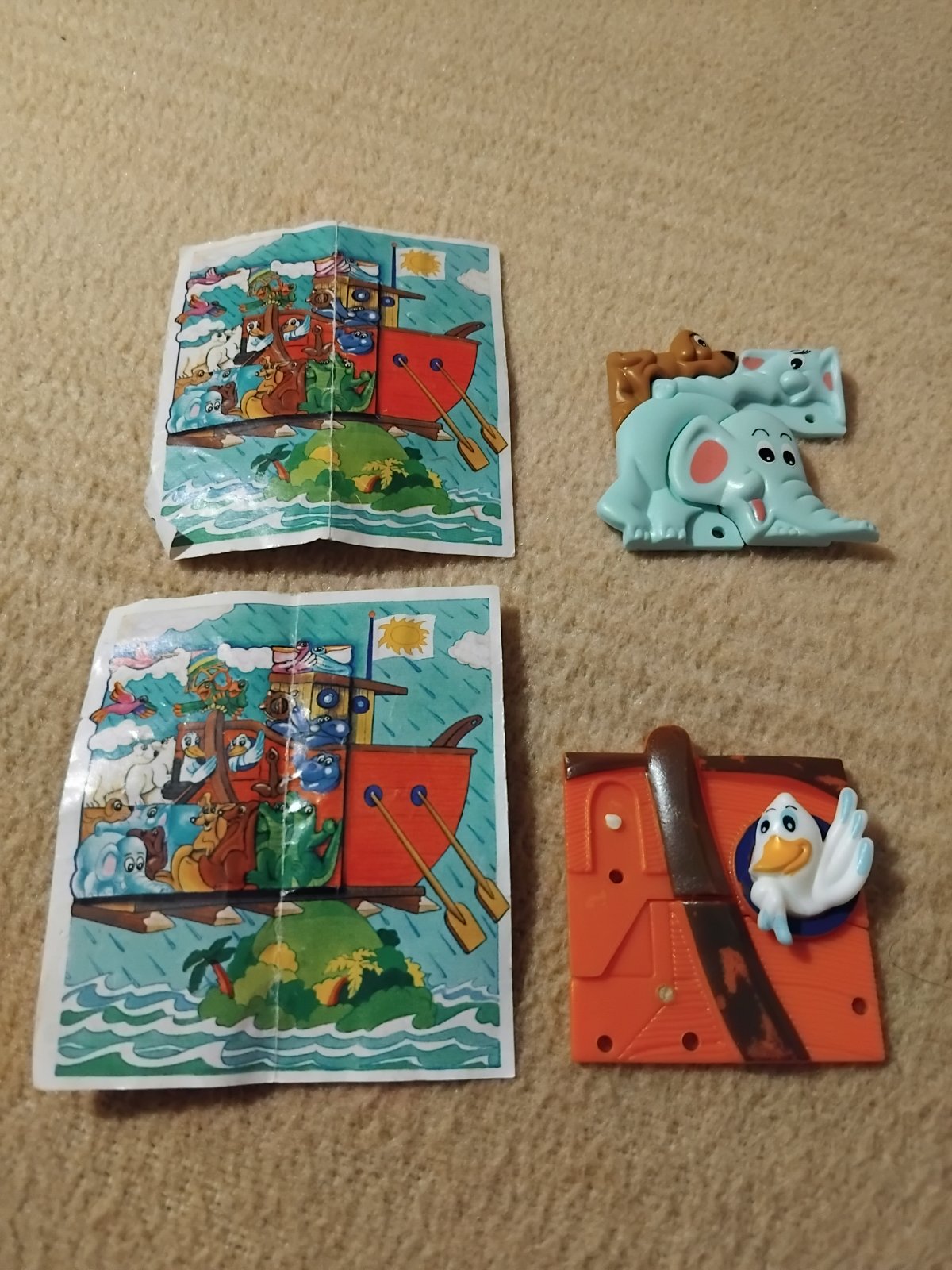 Nekompletne sady kinder Noemova archa, s papierikom. Niektore casti chybaju, pre zberatelov na doplnenie dielov.