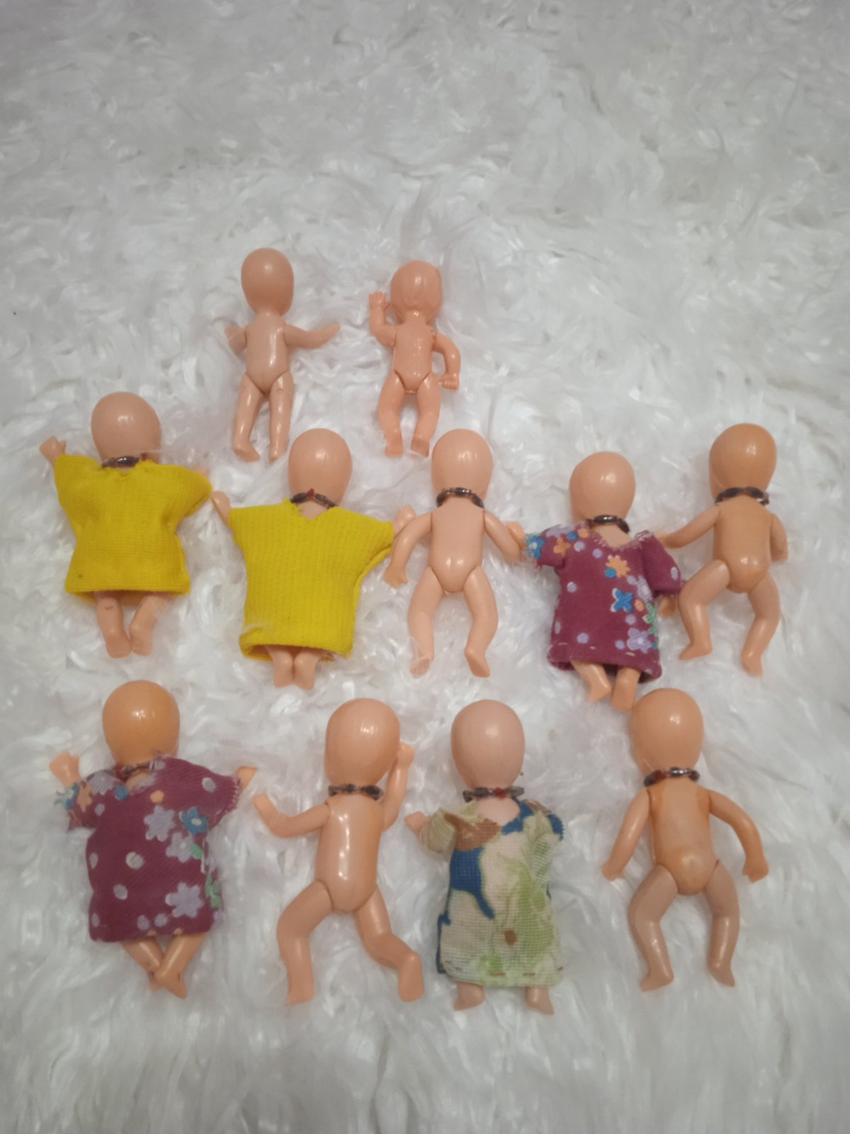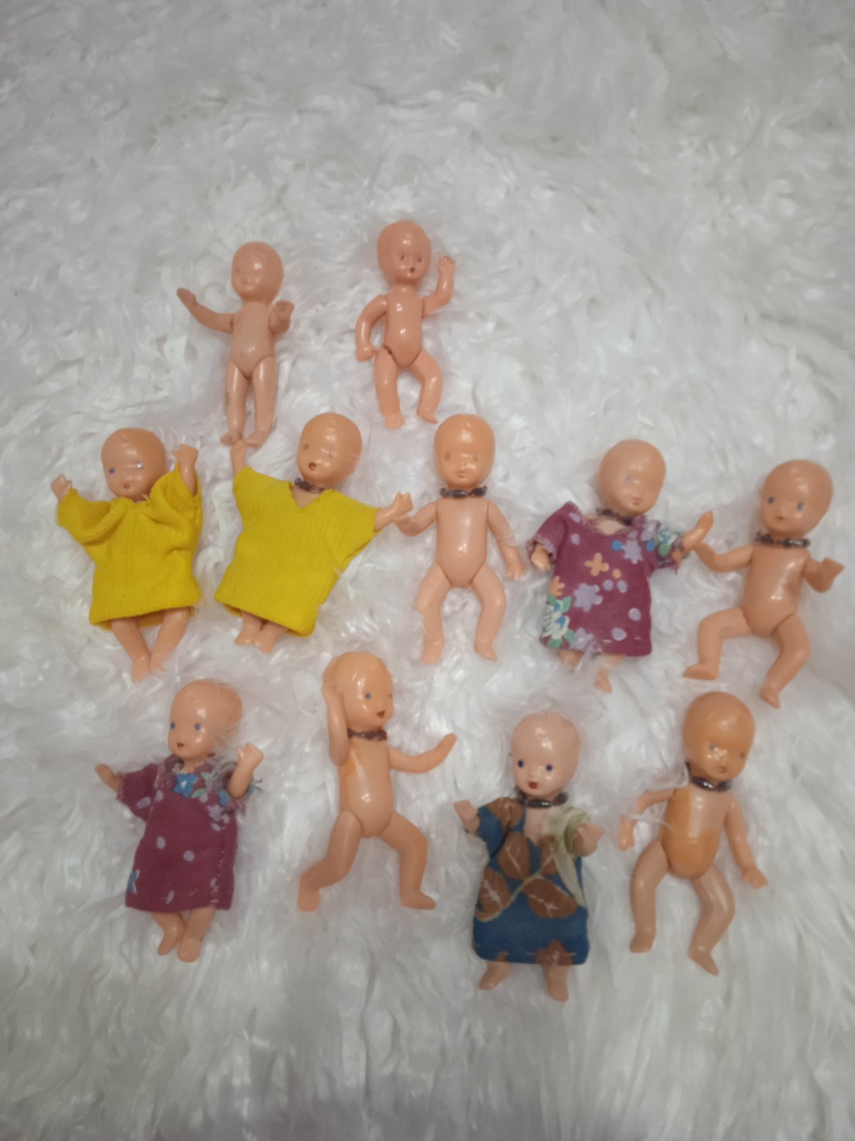 👶👶👶..... Každá má nejaké drobné poškodenie. Nalezový stav ale stále milé bábiky zo 70-80 rokov. Treba sa im trošku povenovať, predám len spolu
