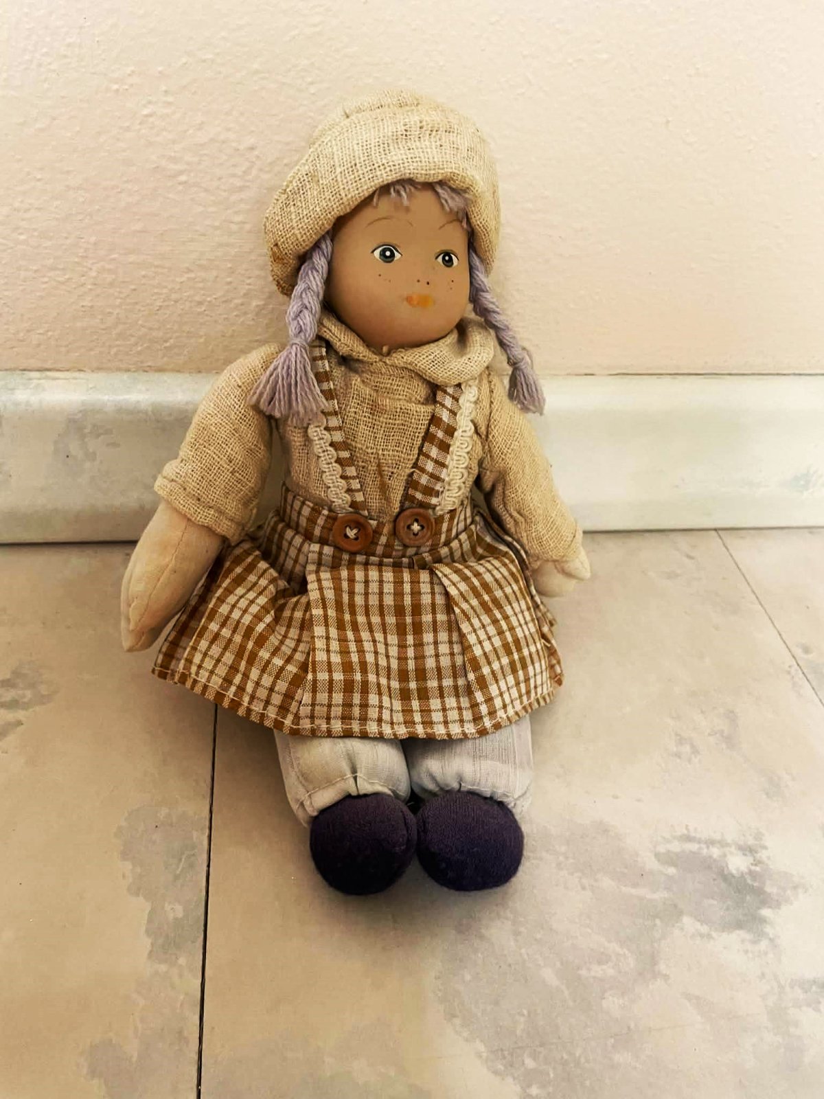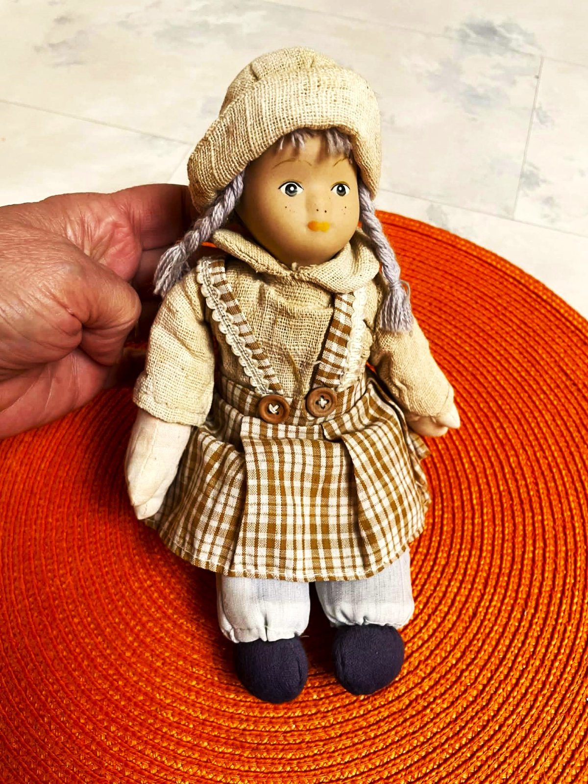 stará bábika ešte z prvej republiky,24 cm,látková s porcelánovou hlavičkou,na rúčkach zo zadnej strany jemne akoby popúšťaná farba - viď foto-keď sa stiahne rukáv dole - nie je to vidieť,ale upozorňujem,papučky jemne vyblednuté - nerovnomerne,ale to dáva tú správnu patinu stariny...24 cm