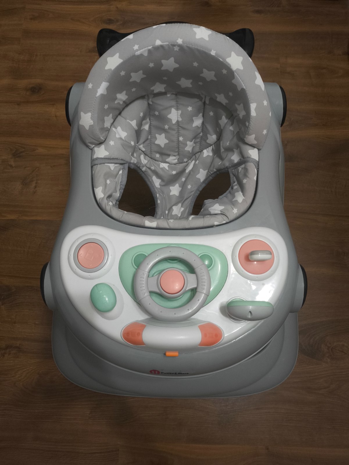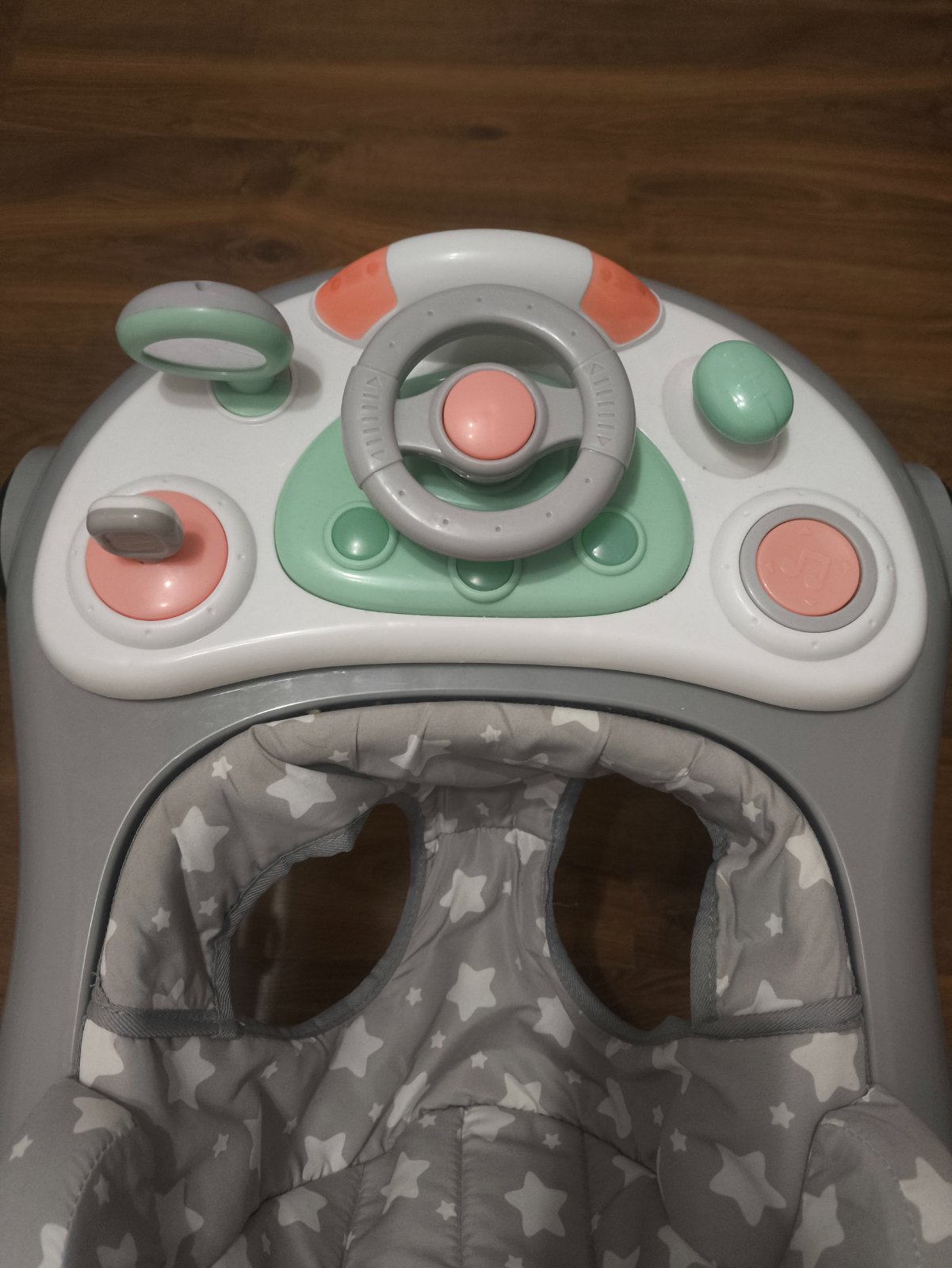 Chodítko je ľahkej plastovej konštrukcie v celku. Predné kolieska sú otočné,zadné sú gumené,chrániace podlahy(už žiadne ryhy). 3 stupňová regulovateľná výška sedenia 6 bŕzd Hracia doska s hračkami ...