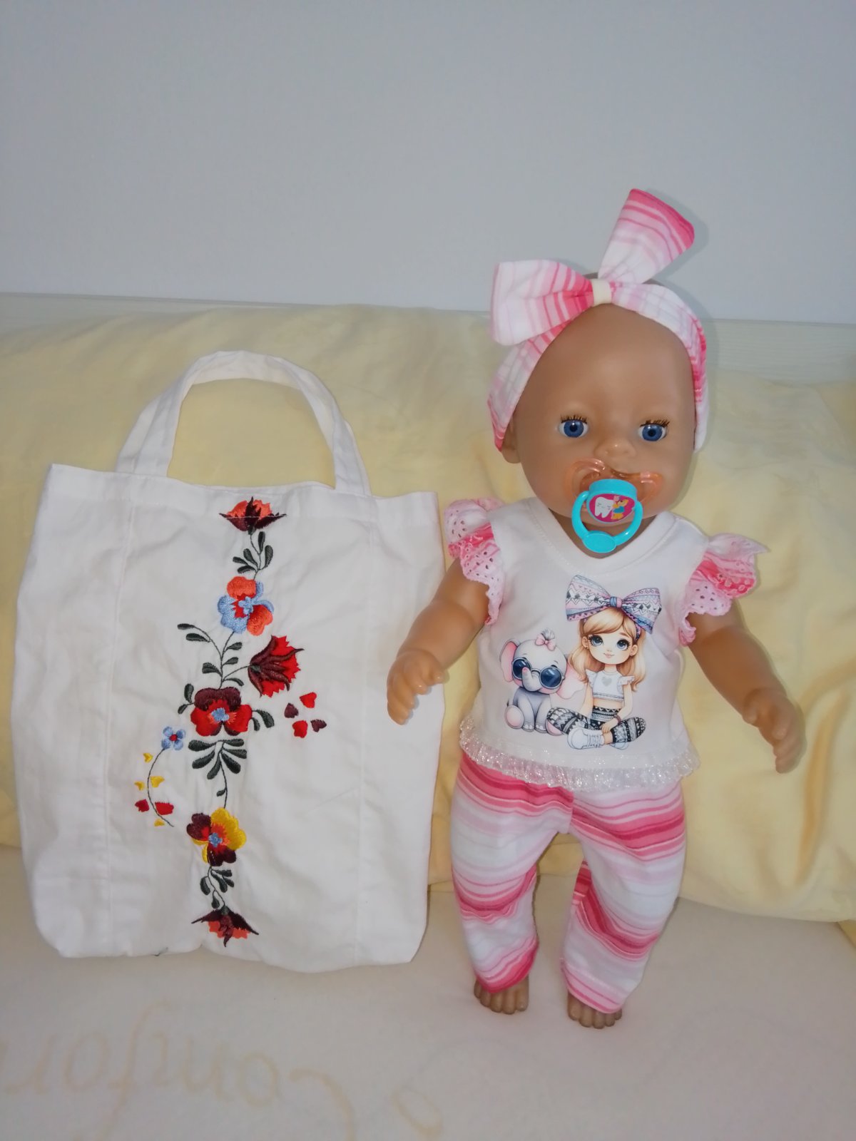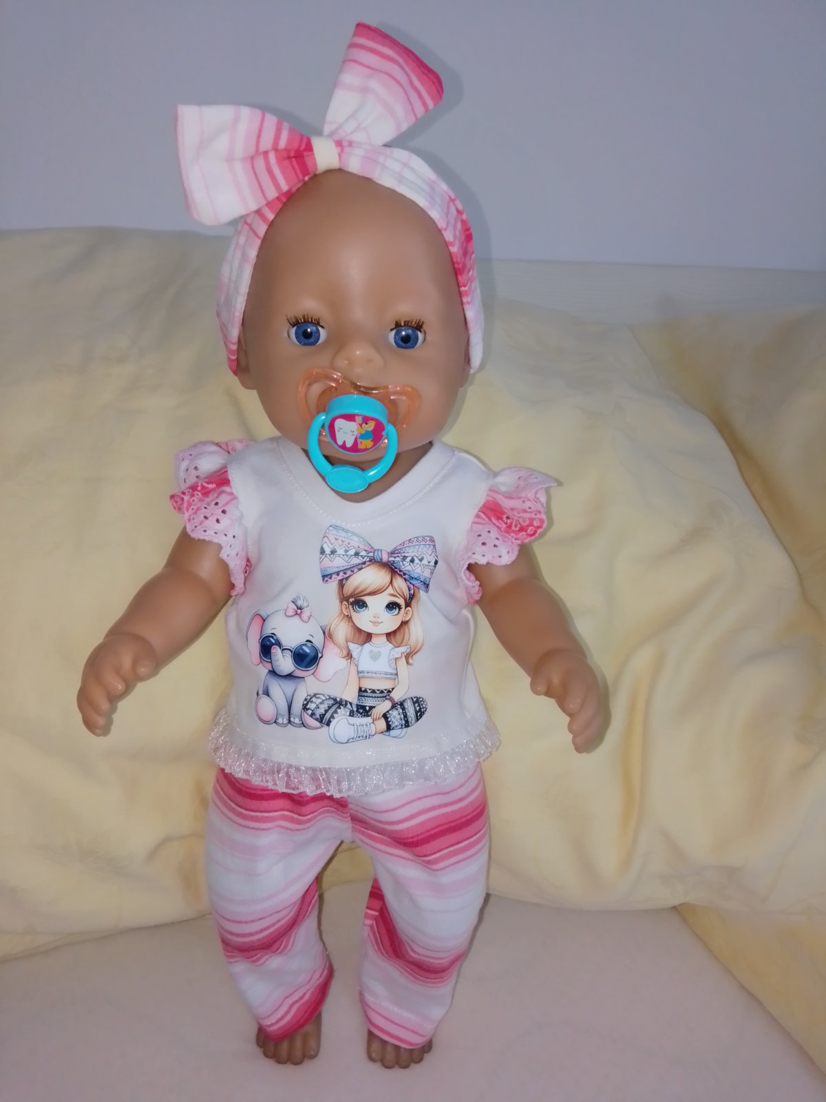 oblečenie je šité, nehrané. Vhodné pre bábiku baby born 43 cm a staršiu sestričku 43cm.