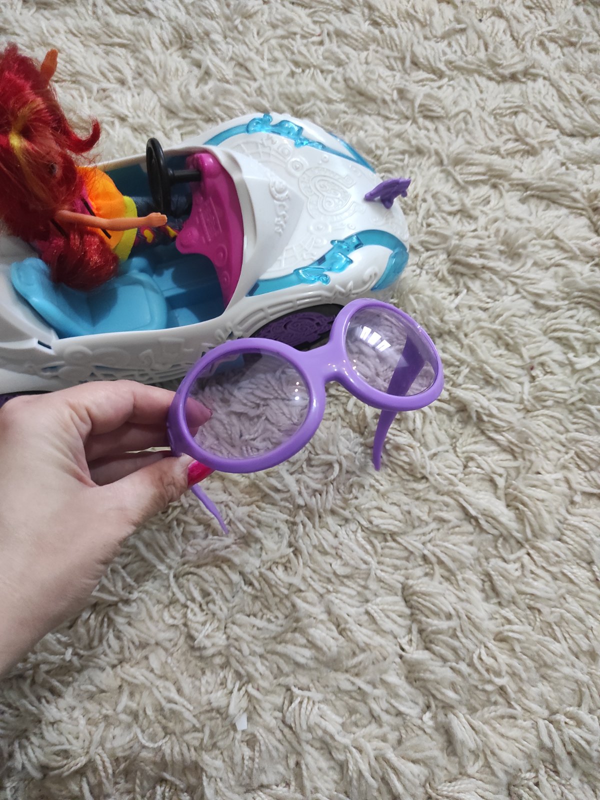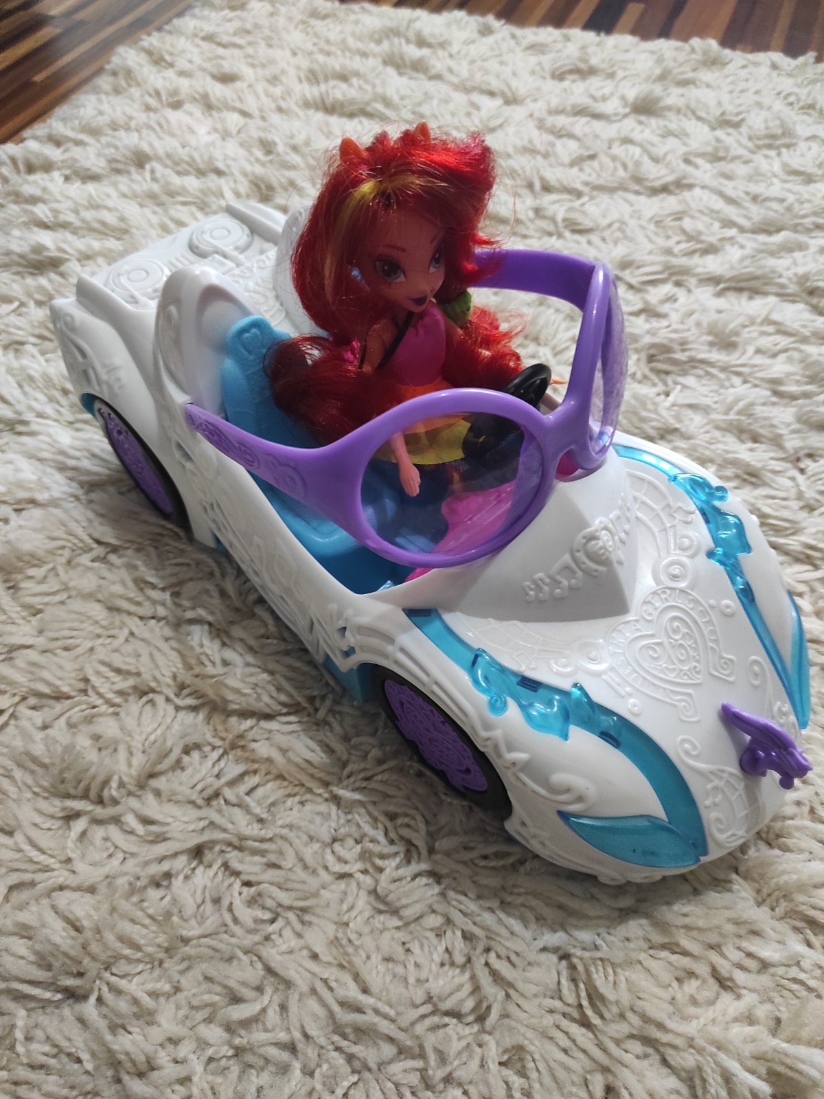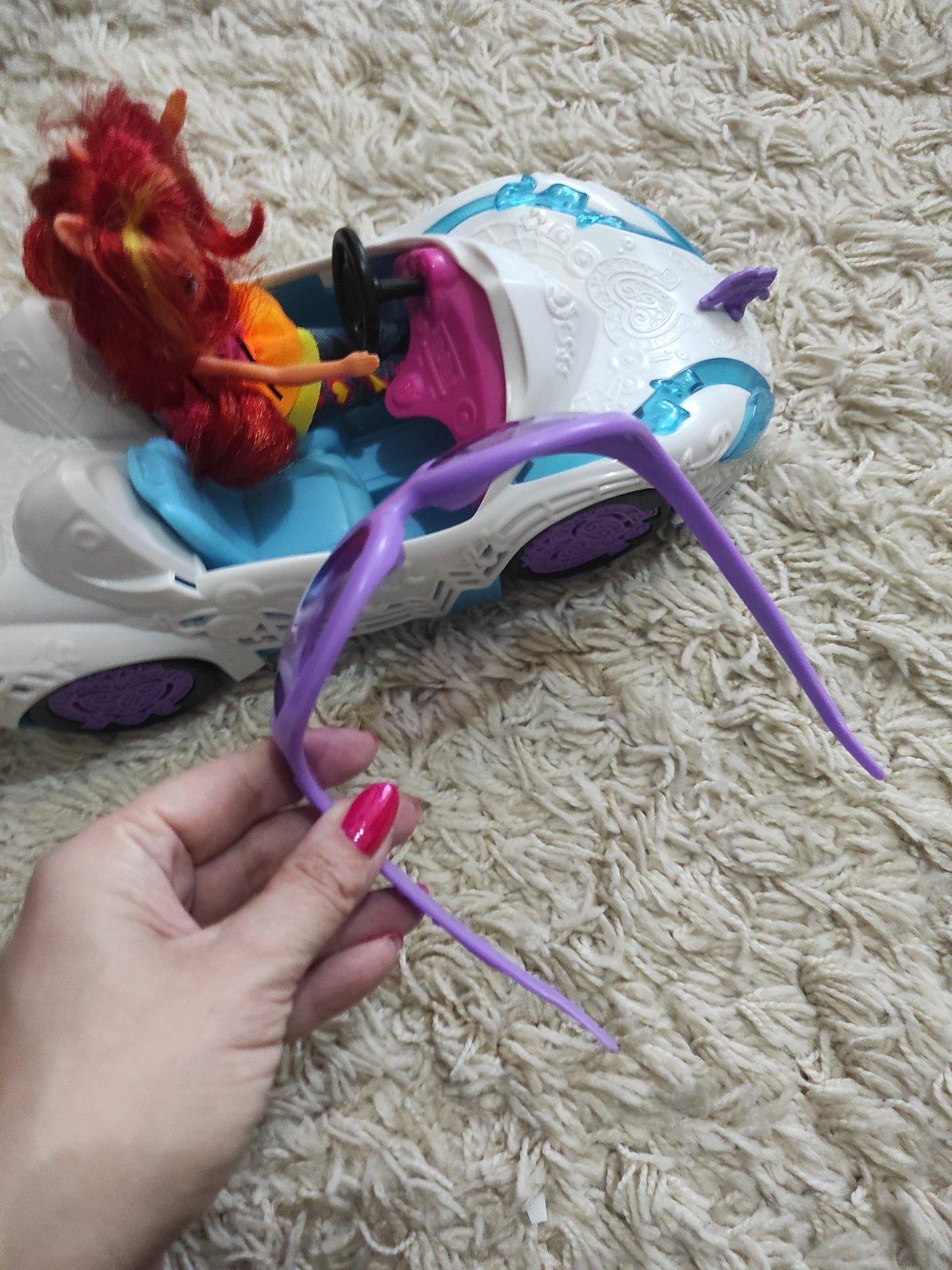 Autíčko s bábikou mlp v top stave málo hrane len vystavené na poličke. Okuliare sú funkčné vhodné pre dievčatá
