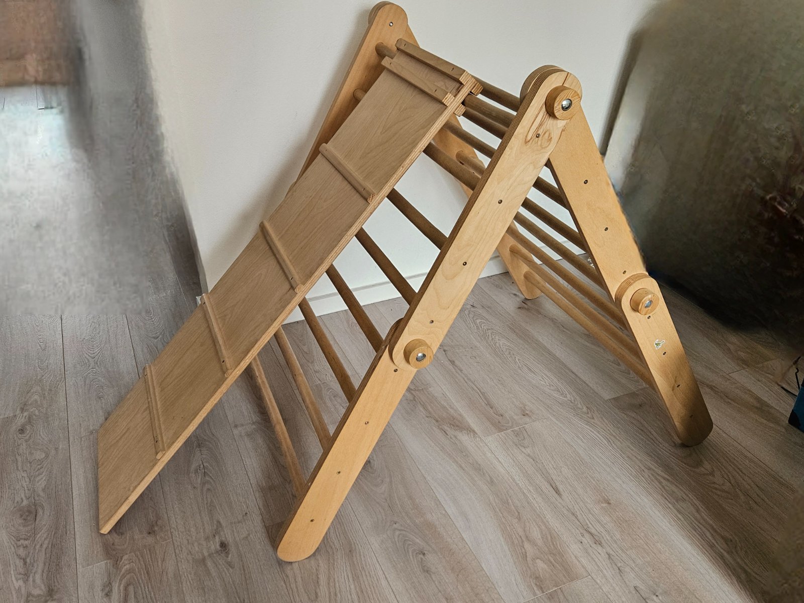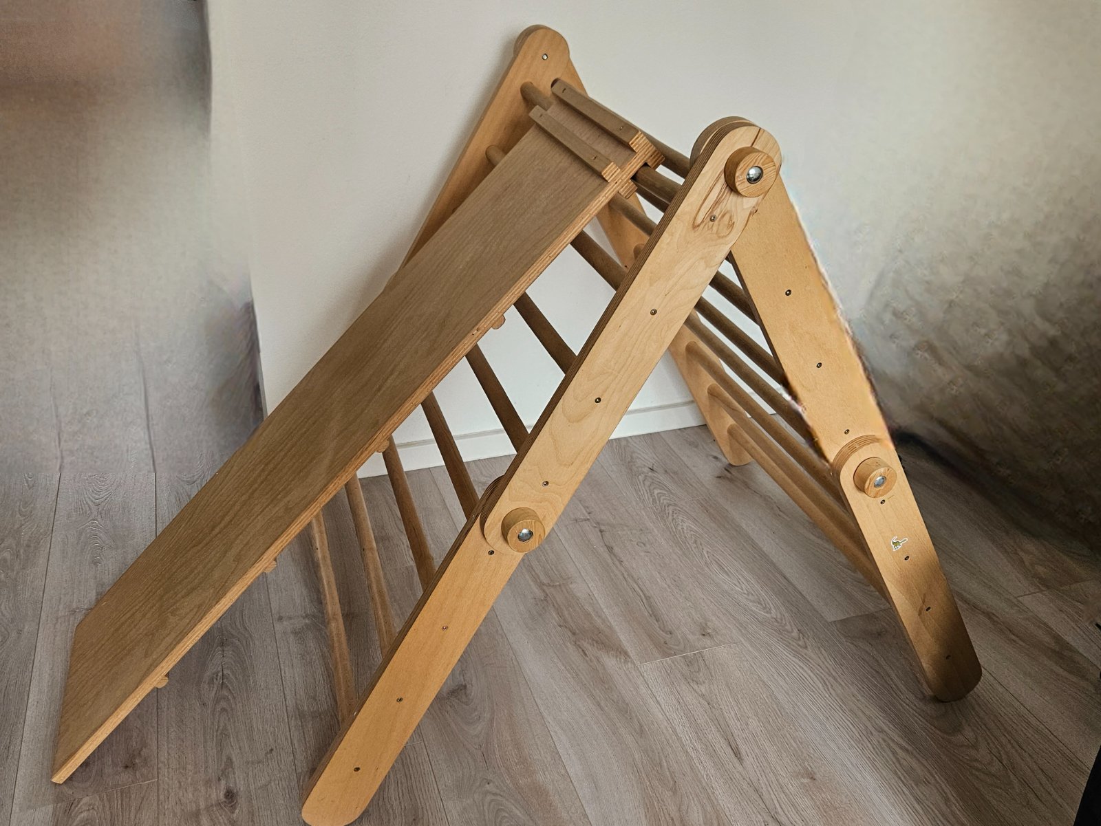Štvorramenný Piklerovej triangel je obľúbená drevená Montessori preliezačka navrhnutá na rozvoj hrubej motoriky, rovnováhy a sily u detí (od batoliat po škôlkarov). Tento bezpečný skladací rebrík umožňuje samostatné lezenie, čím podporuje fyzickú sebadôveru. Často sa kombinuje s obojstrannou doskou (šmykľavka/lezecká stena), čím vzniká domáce ihrisko.