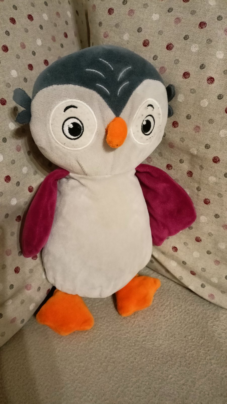 Značka Fisher price. Hrá upokojujúce melódie, bruško sa pohybuje hore dole, lampa svieti, hračka dýcha, bije mu srdiečko. Toto všetko sa dá zvlášť vypínať podľa potreby. Super pomôcka na zaspávani...