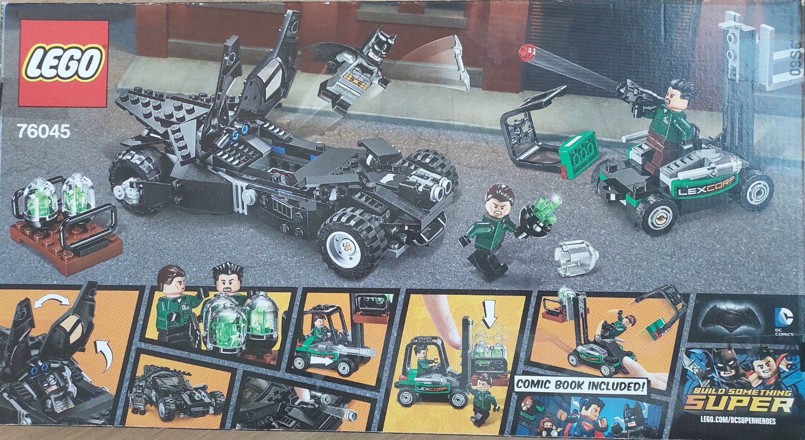 Obsahuje 3 minifigúrky so zbraňami a doplnkami: Batmana a ďalších hrdinov (Lexcorp Henchman). Vhodné pre deti od 7 rokov