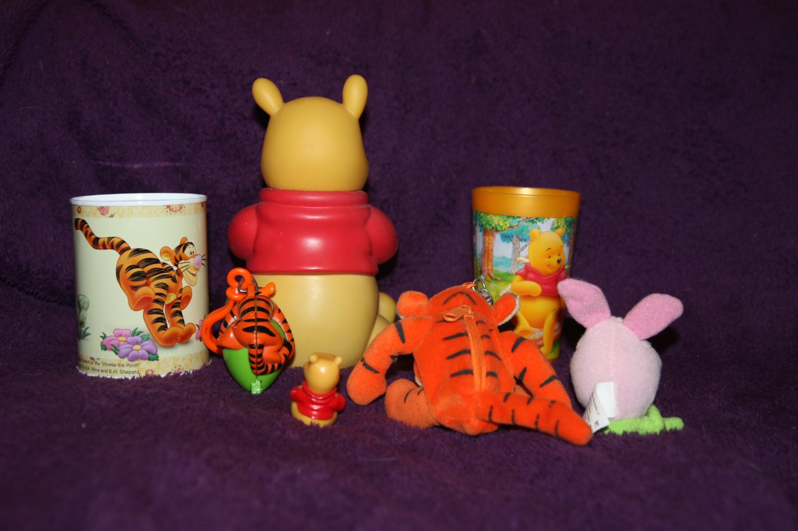 Hrane, zachovale. Flasa od peny do kupela ( prazdna) , privesok na kluce, obal na lizatko, pokladnicka, poharik, prasiatko na ceruzku.