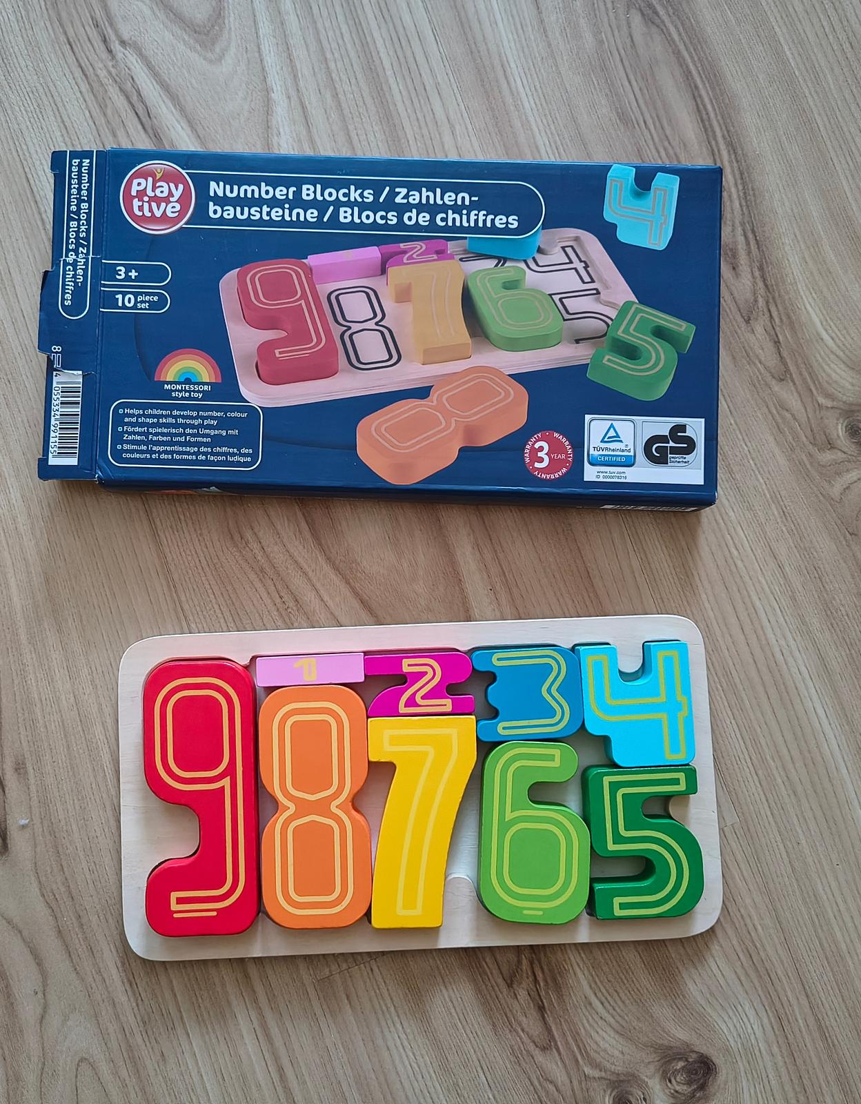 Hravým spôsobom podporujú manipuláciu s číslami, farbami a tvarmi, farebné drevené očíslované stavebné prvky na spájanie, zaraďovanie a počítanie. Vhodné pre deti od 3 rokov