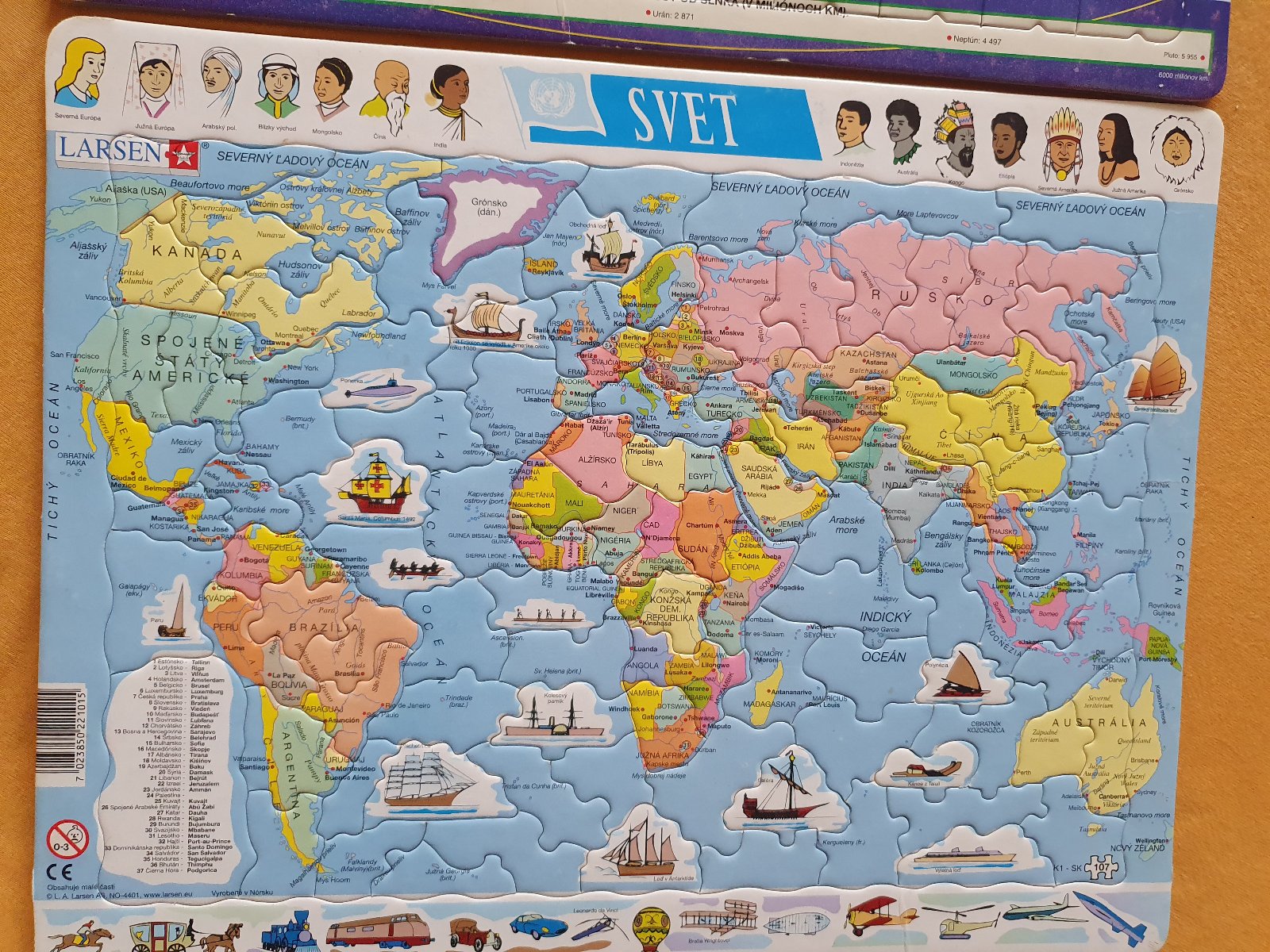 Predám 2 ks puzzle -mapa sveta a slnečná sústava. Cena spolu
