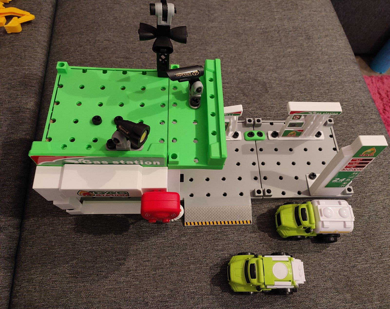Velmi pekny stav.Zial skrutkovac sa stratil (pasuje hoci aky hrackarsky) a chybaju dva spojovacie dieliky a dve skrutky (drzi pokope aj bez toho 😅 )