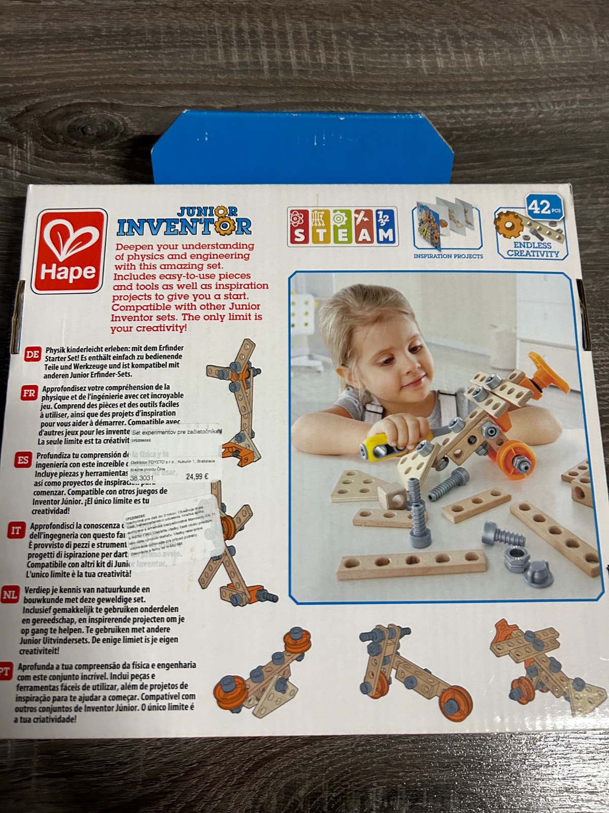 8P6K.S touto úžasnou sadou Hape si môžete prehĺbiť a rozšíriť svoje znalosti fyzicky a techniky. Súprava obsahuje mnoho dielikov, náradia a inspiračné projekty, ktoré vám pomôžu začať. Jediným limitom je vaša kreativita! Kompatibilný s ostatnými sadami Junior Inventor. Počet dielikov: 42 ks.