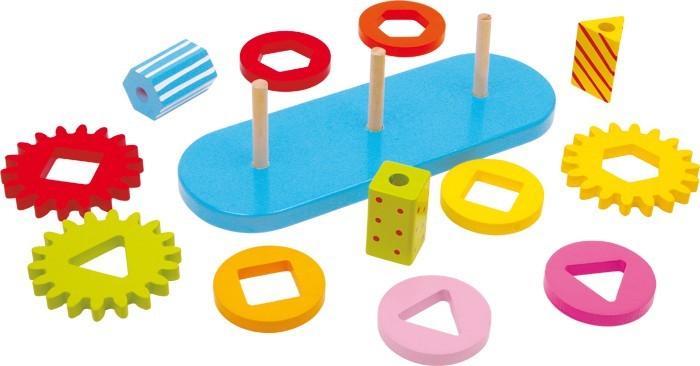 Aký pekný nápad pre hru! Pestro pomaľované, triediace prvky z dreva sú vzájomne spojené ozubenými kolesami. Tak možno okrem citu pre tvary a farby prvýkrát zažiť a vyskúšať aj svet mechaniky!