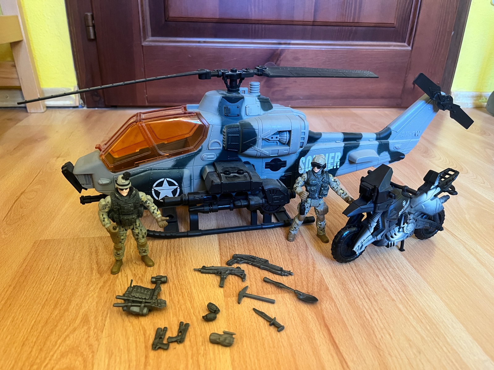 Vojenský vrtuľník s motorkou