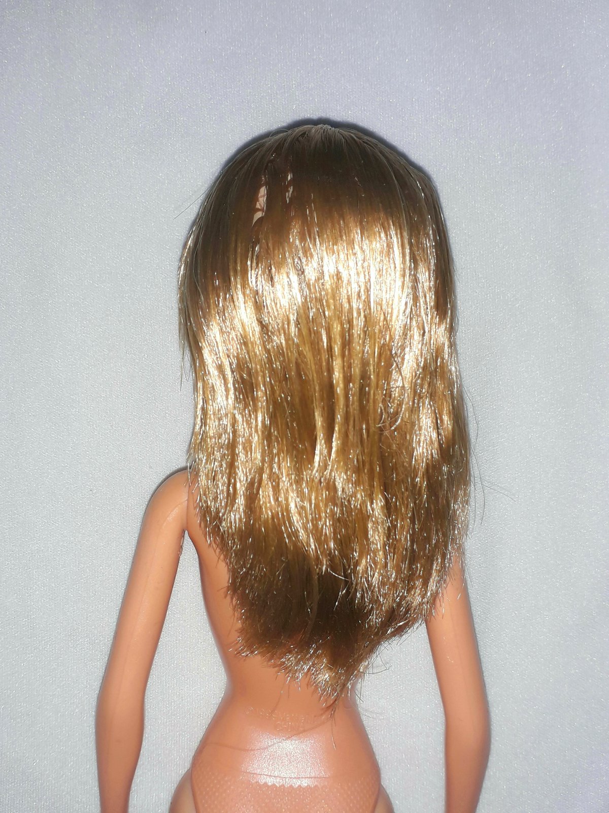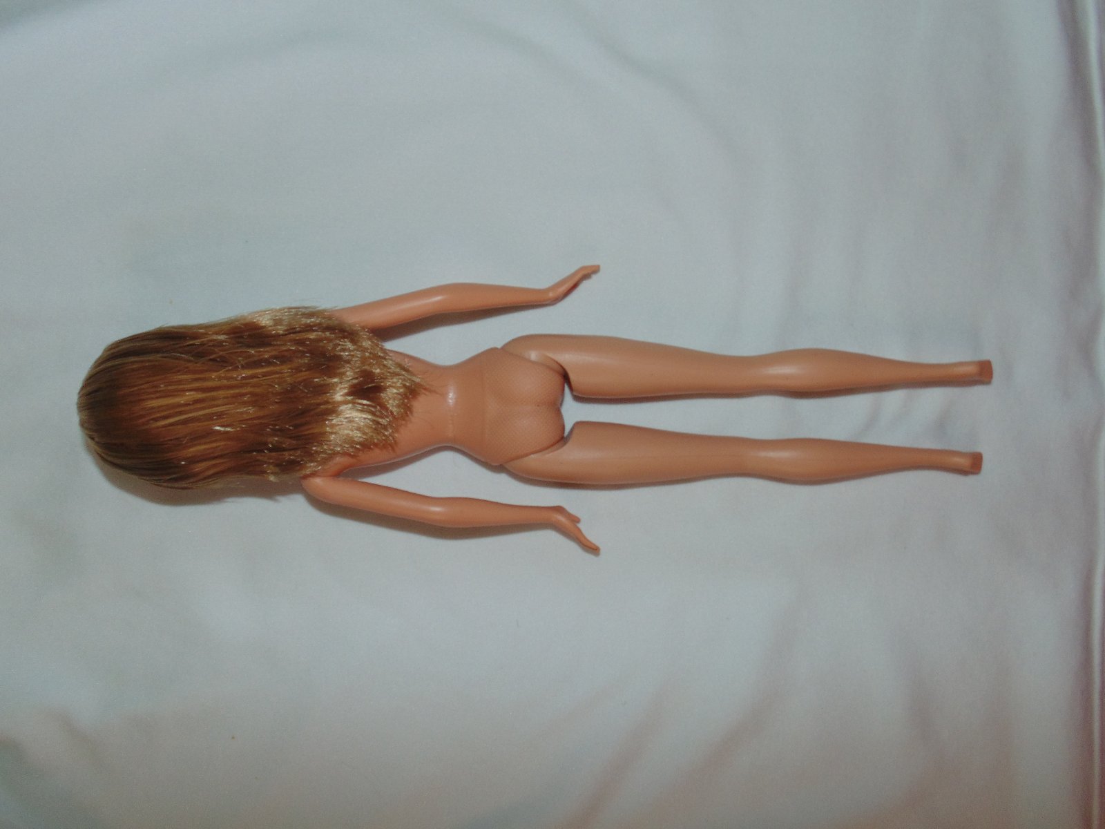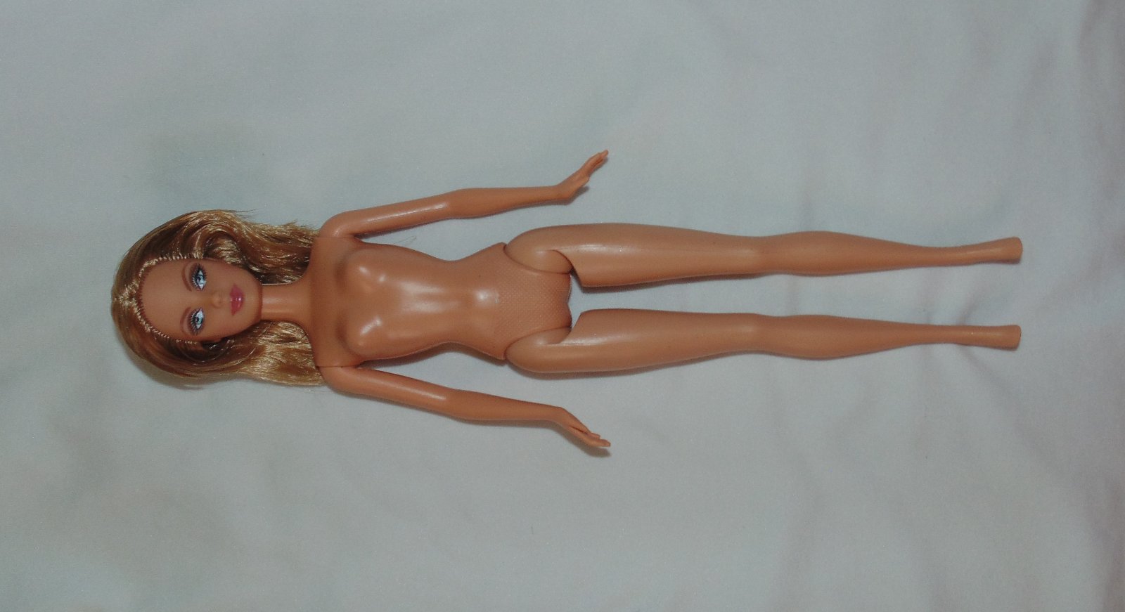 Barbie má originál zagélované vlasy - nikdy nebola hraná. Nemá žiadne poškodenia. Má gumené nohy, je ohybná v kolenách, rozkročí nohy a upaží ruky. Na predaj je nahá, bez krabice, oblečenia a doplnkov.