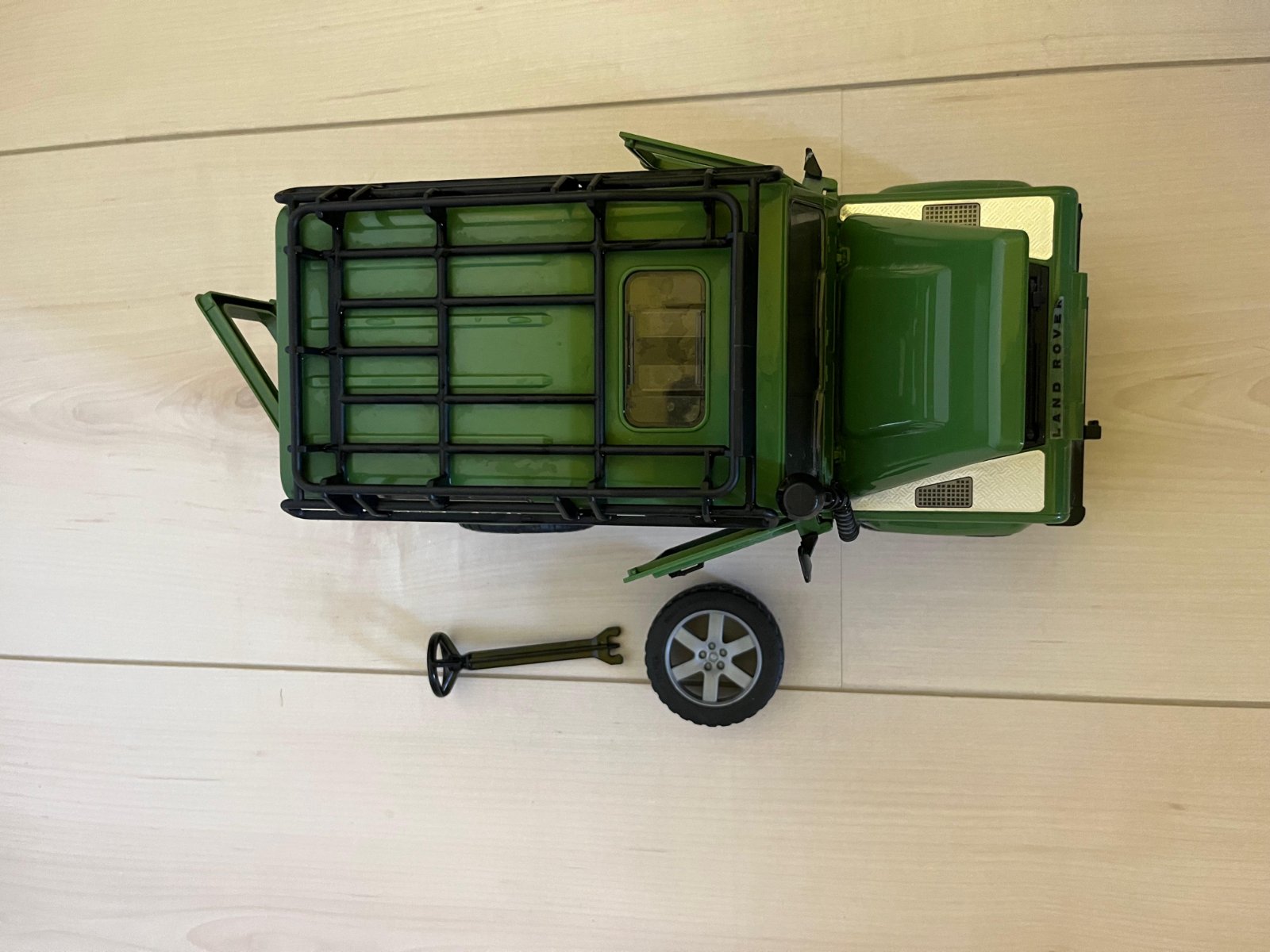 Velky zachovaly Land rover, oblubena hracka. Dvere otvaratrlne, ovladanie kolies volantom na streche. Nie je RC model. Velkost cca 30 cm dlzka. Chyby: koleso na zadnych dverach odpadava, da sa prilepit sek lep. Je na foto. Osobne, ba ch grob okolie, postou.