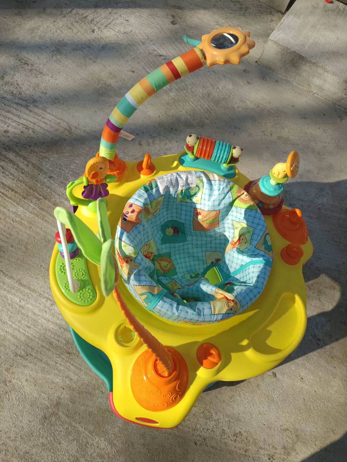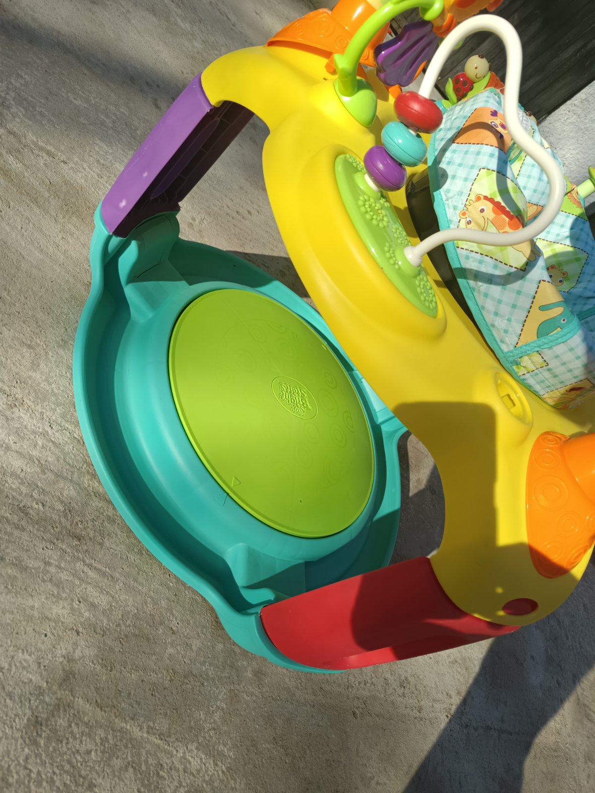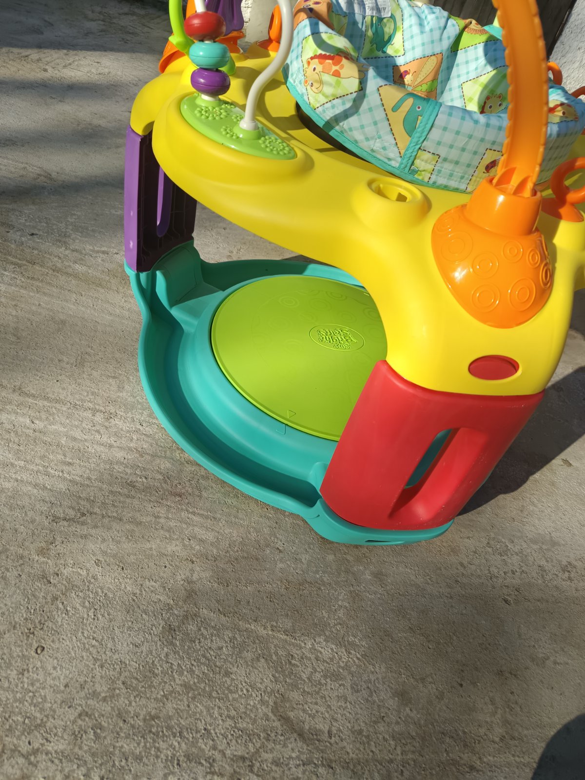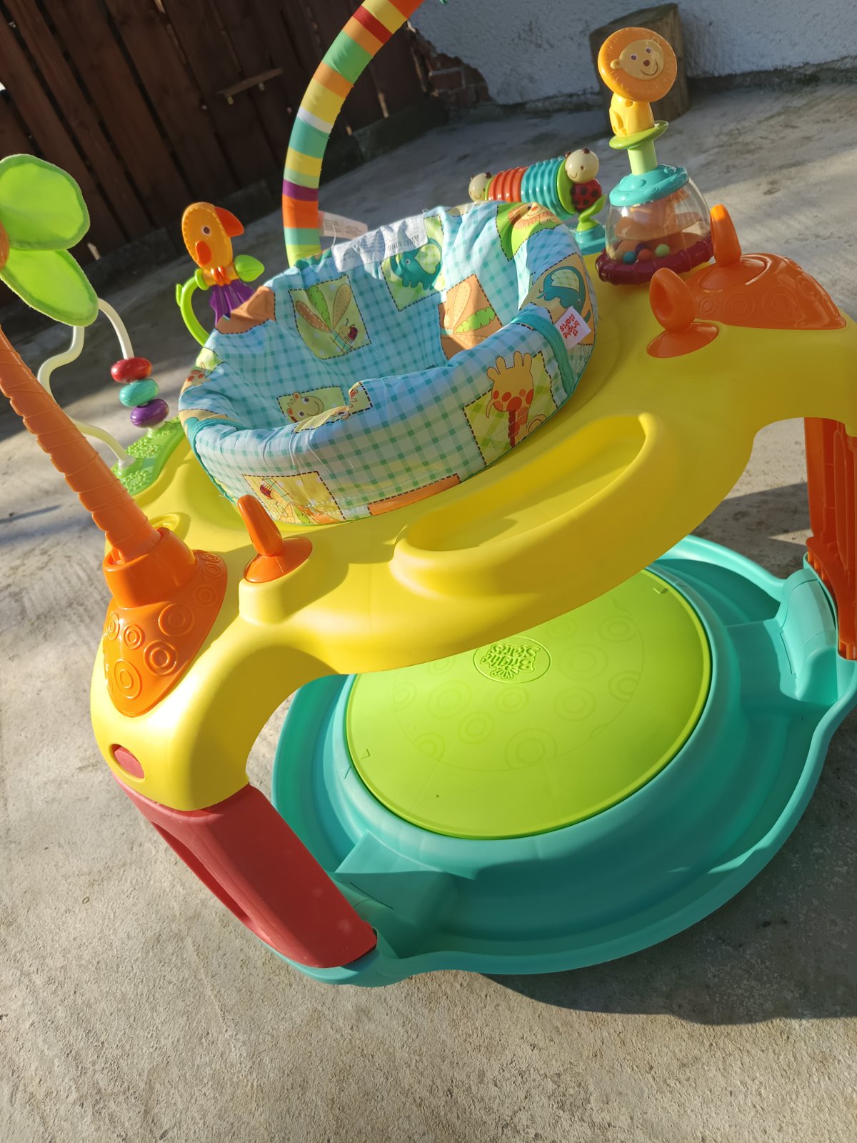 Podporuje pohyb a rozvoj zmyslov dieťaťa prostredníctvom zábavných hračiek a postavičiek.