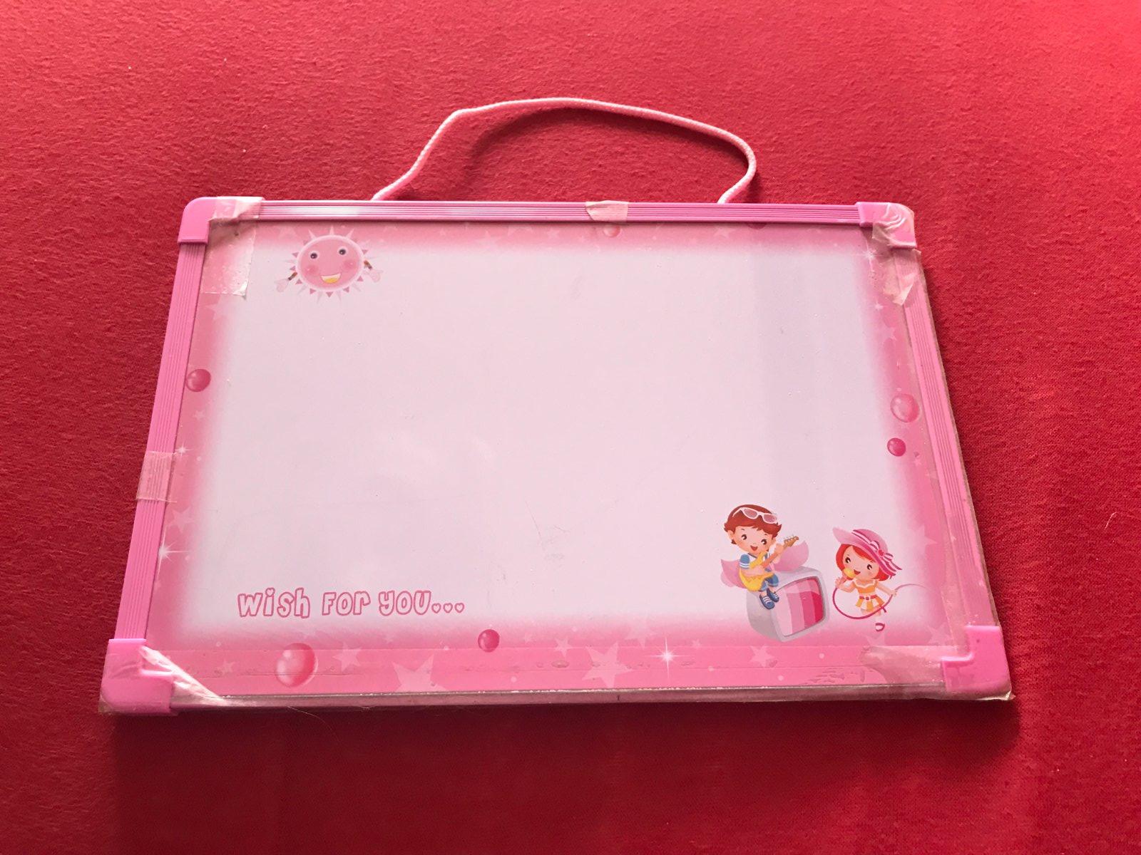 Predam obojstrannu plastovu dosku na kreslenie fixkami, handrickou sa utiera. Po okrajoch je zalepena lepiacou paskou, na spevnenie, stale pouzitelna.