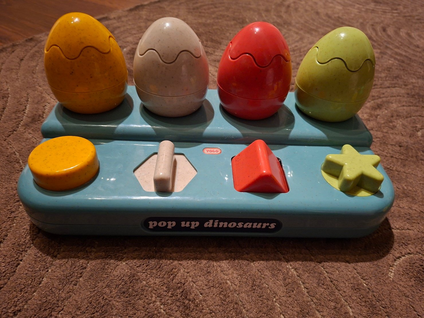 Tolo hračka z BIO plastu. Skvelá kvalita. Jedna z obľúbených hračiek, ako nová. vzdelávacia hračka 1-2 roky - koordinácia oko-ruka, farby, rôzne typy tlačidiel. Dinosaury sa po vyskočení dajú zatlačiť naspäť do vajíčka. Len tak neomrzí. Hračka bez batérií a zvukov či melódií. PC bola 34,90 eur. Cena 15 eur už s poštovným Packety do vami vybraného Z-boxu.