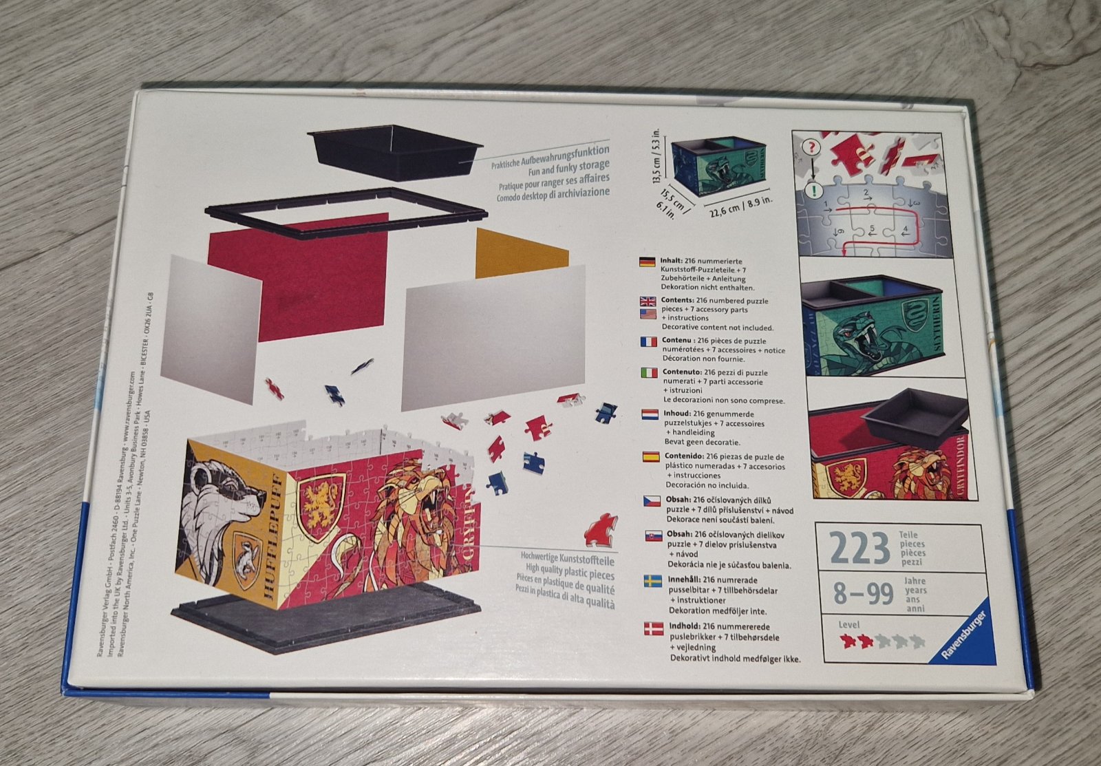 Kľúčové vlastnosti 3D puzzle Ravensburger 3D puzzle 112586 Úložná krabica Harry Potter 216 dielikov