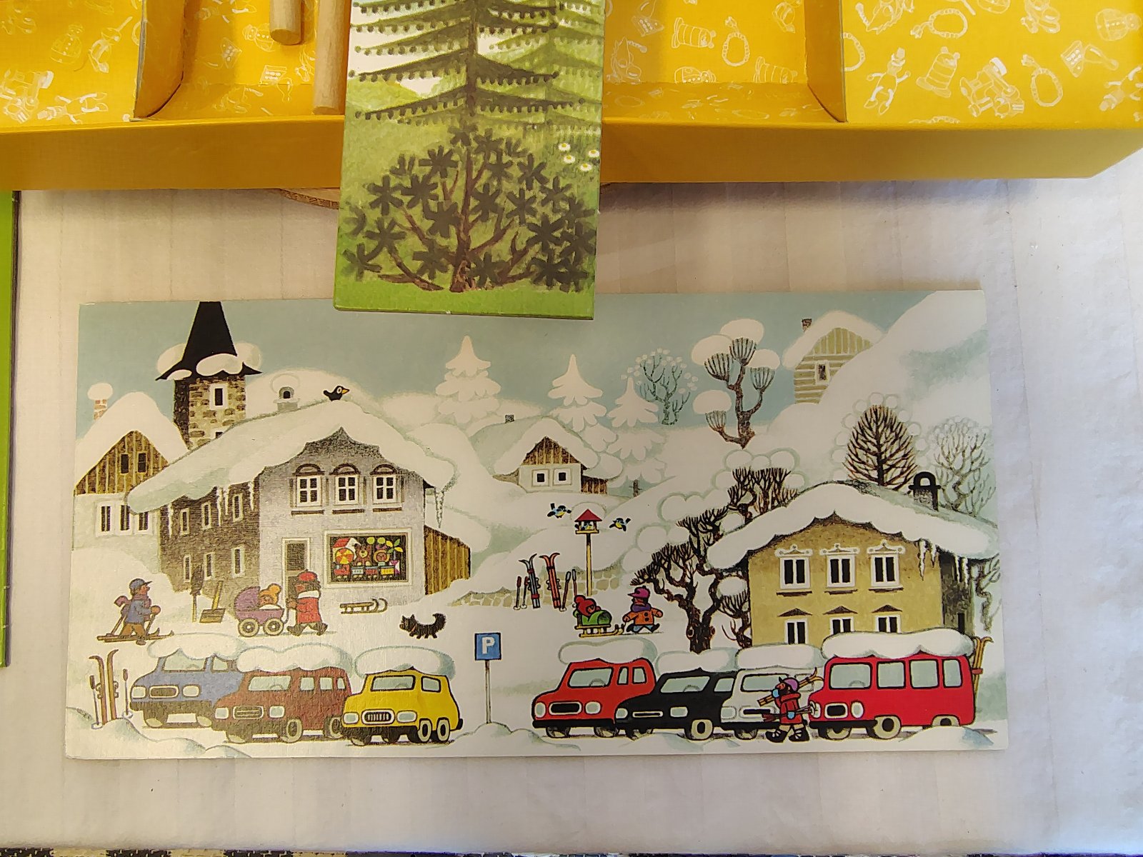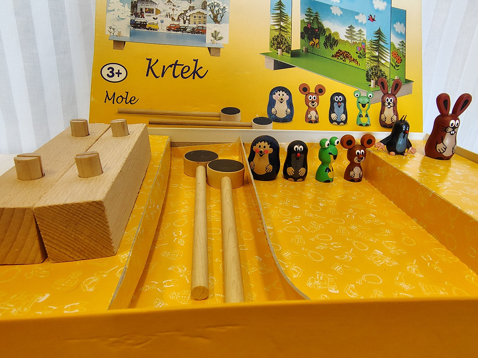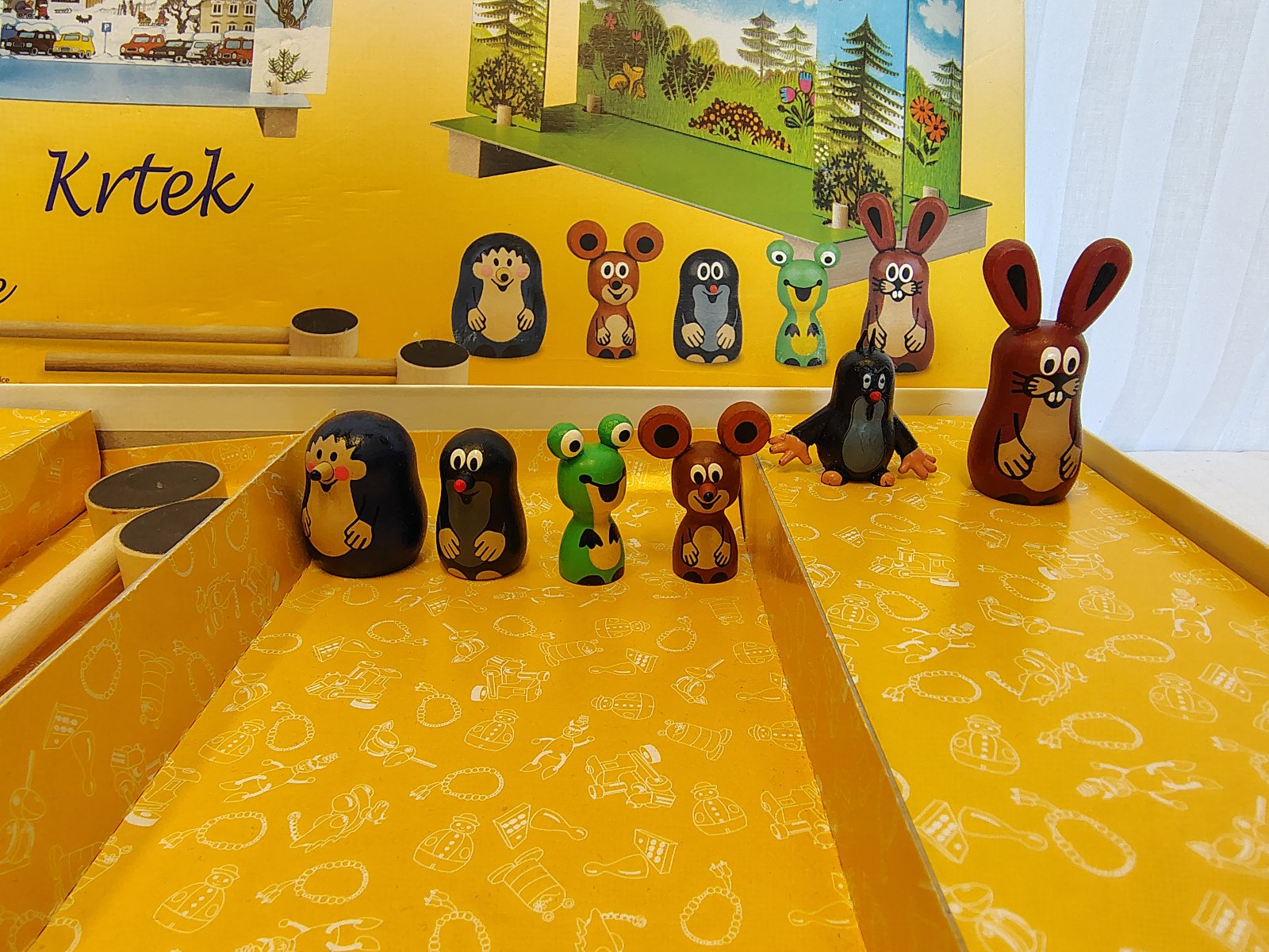 Kompletné príslušenstvo: Javisko, 2 obojstranné kulisy (leto/zima) a 2 originálne magnetické tyčky na ovládanie.