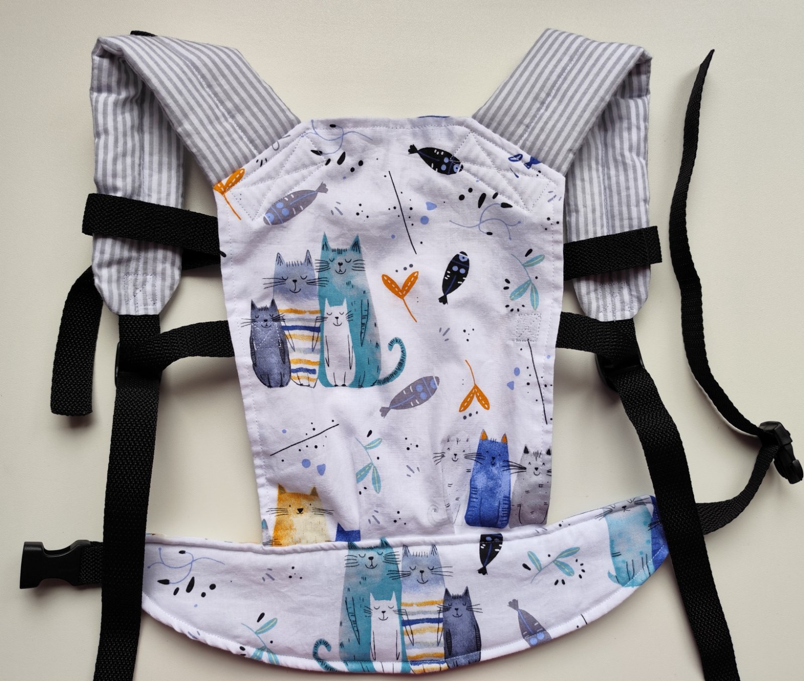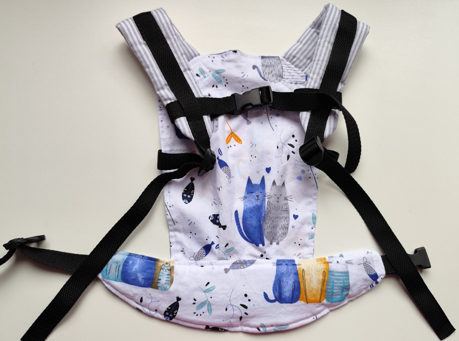 Nosič pre bábiku alebo plyšáka s motívom mačičiek, ktorý poteší malých nosičov a nosičky aj ich obľúbené hračky ☺️
