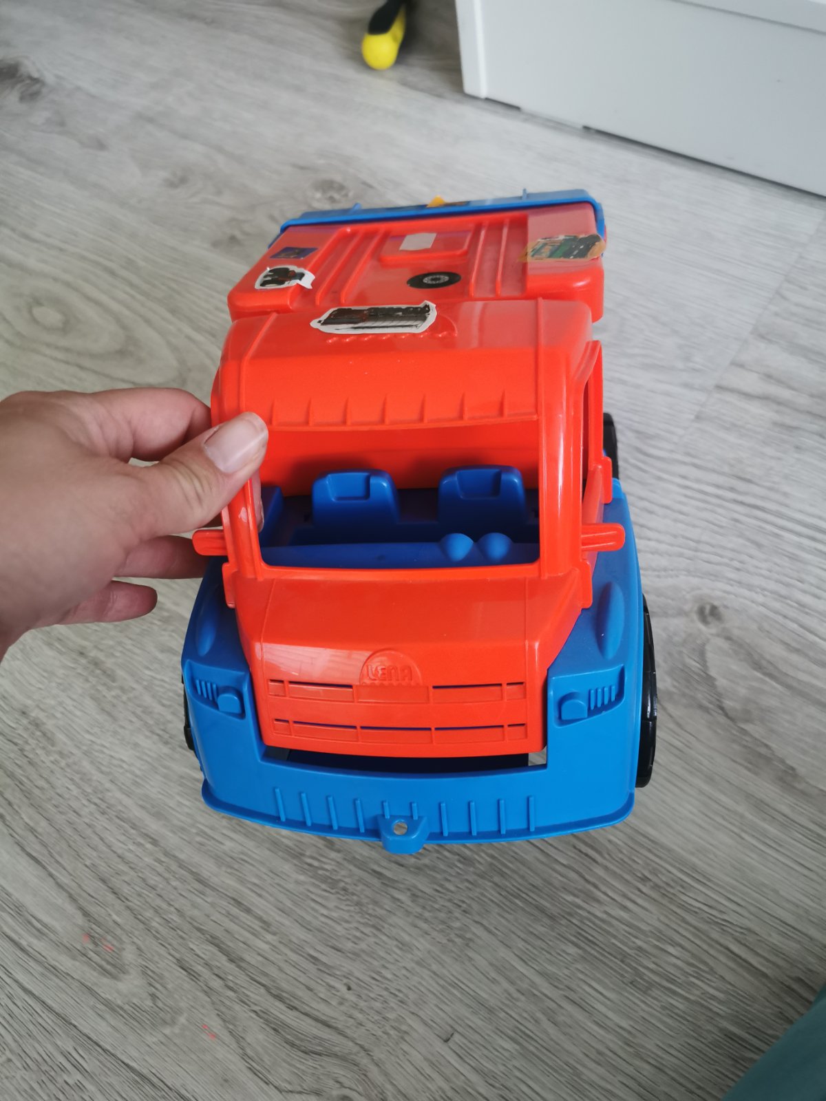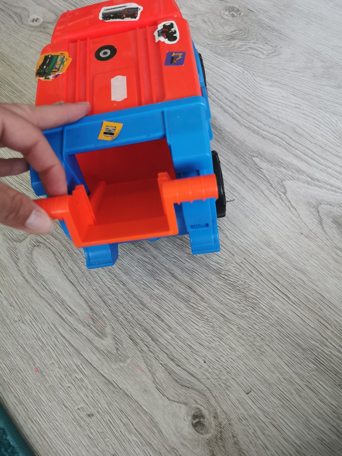 Smetiarske auto v top stave akurát syn si ho polepil s nálepkami, ale dajú sa odstrániť. Vzadu sa dá vyklopiť.V