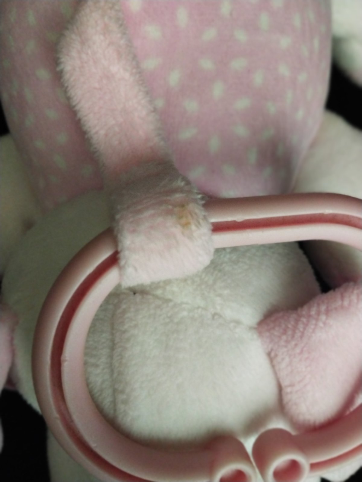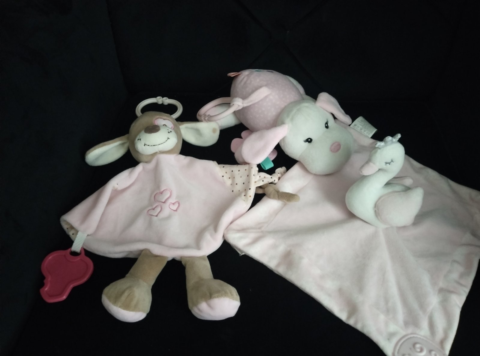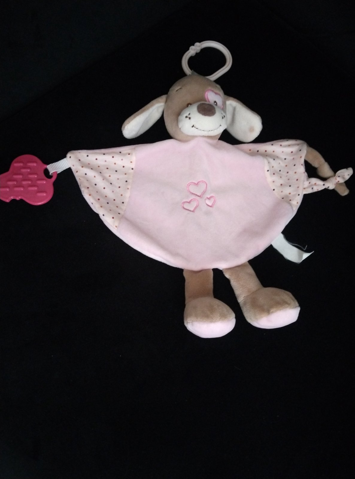 Psik a prasiatko majú odnimatelnu úchytku. Prasiatko má fliacik na nufaciku a uchytke (viď. foto).