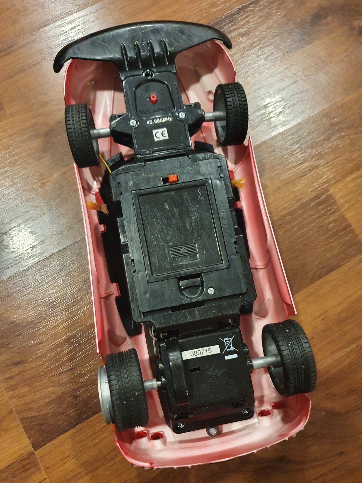Diaľkové ovládanie funguje, len treba dat do autíčka aj do ovládača baterky tužkové.