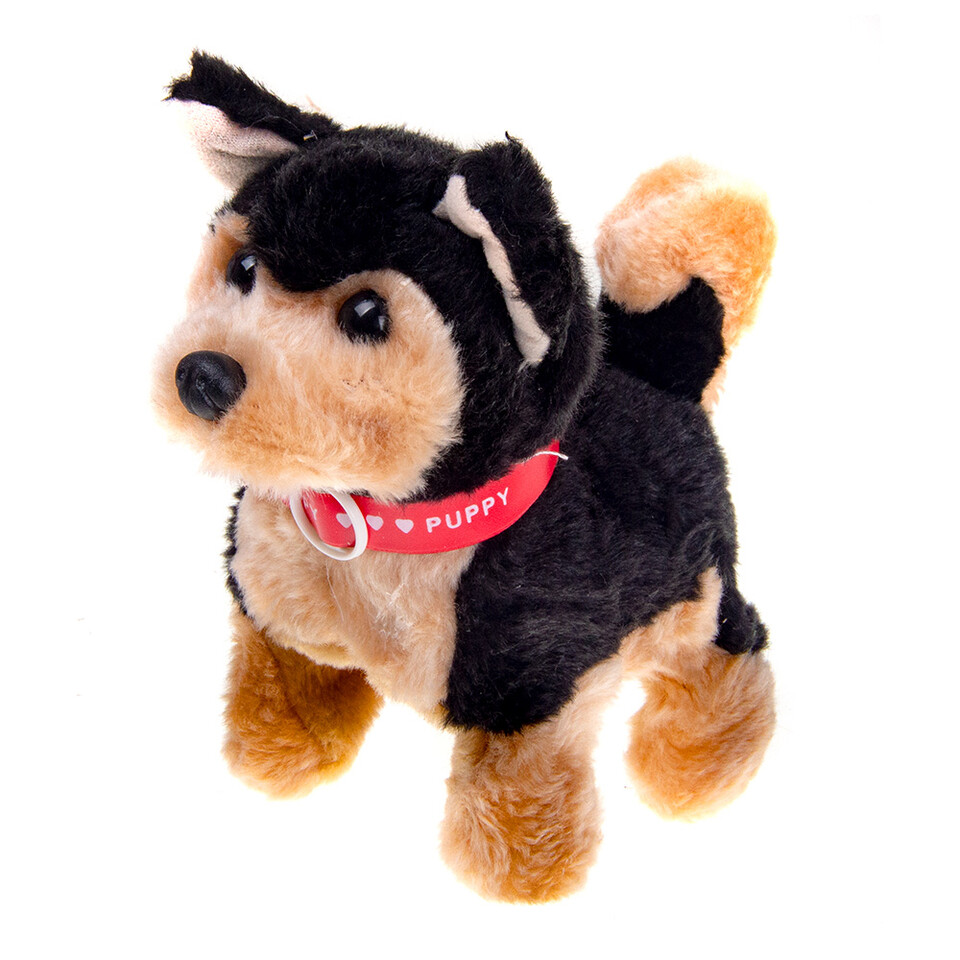 Plyšový psík, vybavený zvukovými efektmi, môže chodiť, hýbať hlavou, vrtieť chvostom. Psík jepoháňaný batériami 2 x AA. Psík sa stane pre dieťa skvelým kamarátom, ktorého nemusíte skoro ráno kŕmiť ani s ním chodiť. Psík chodiaci o veľkosti cca 16 x 18 x 9 cm. Psík chodí, šteká a pohybuje hlavou.