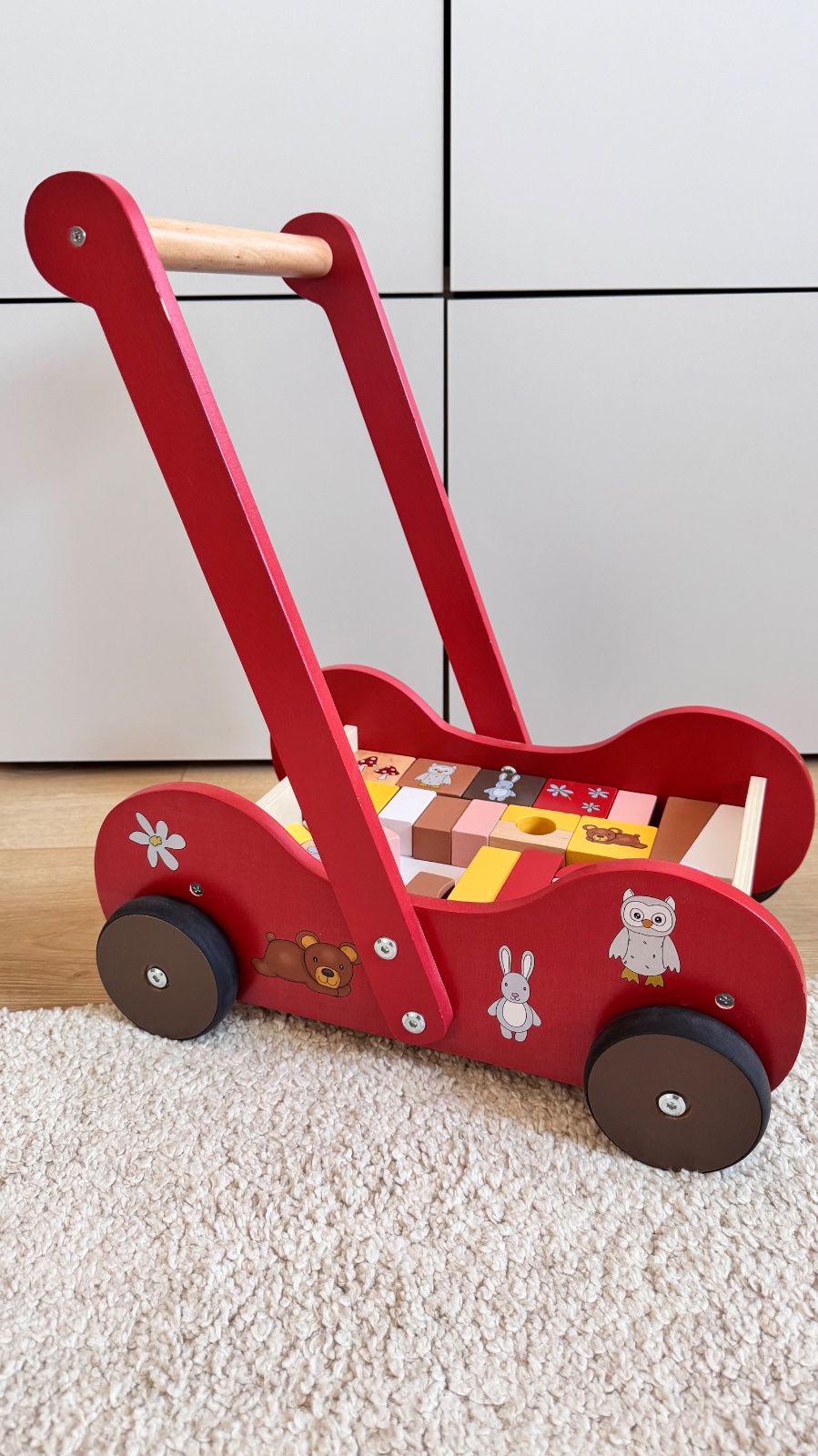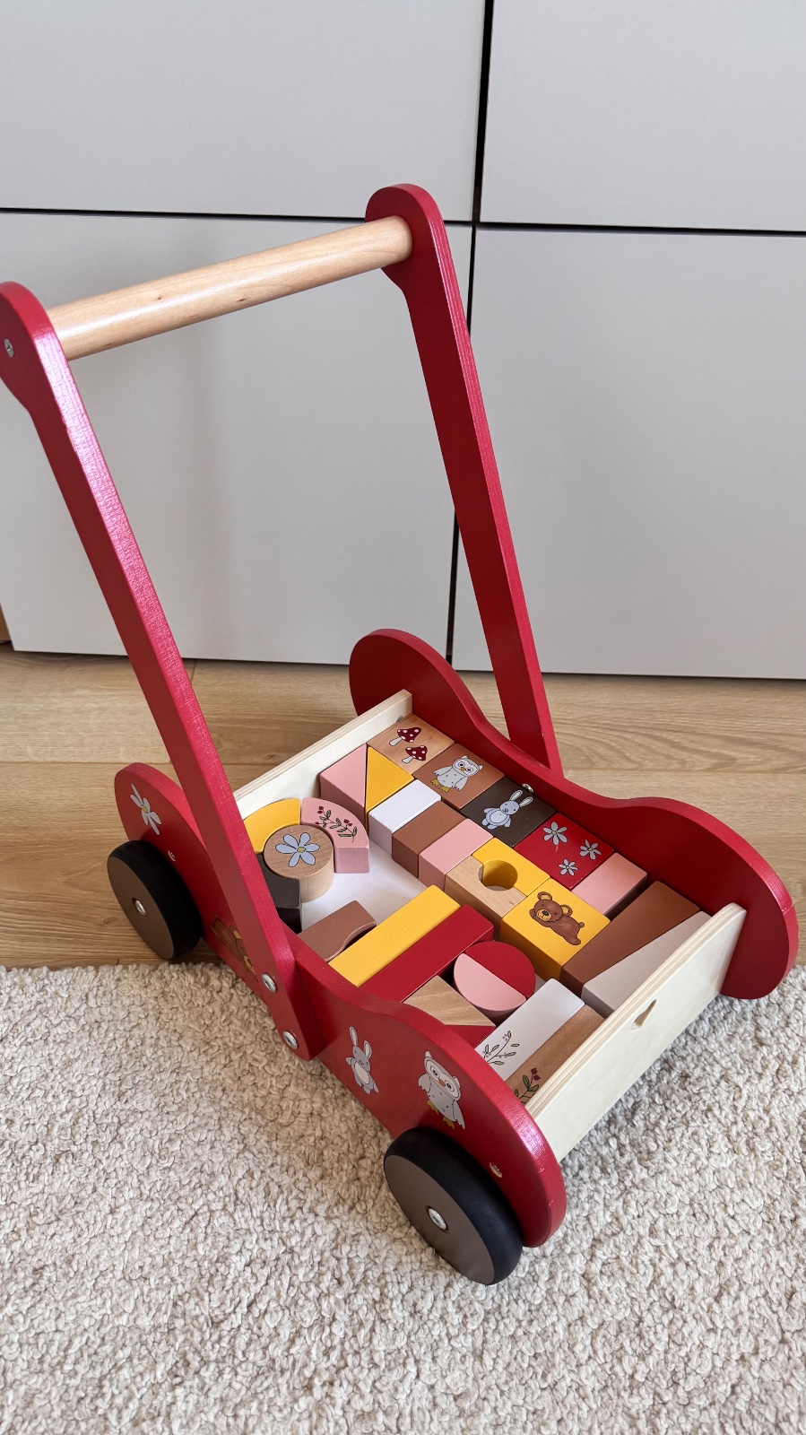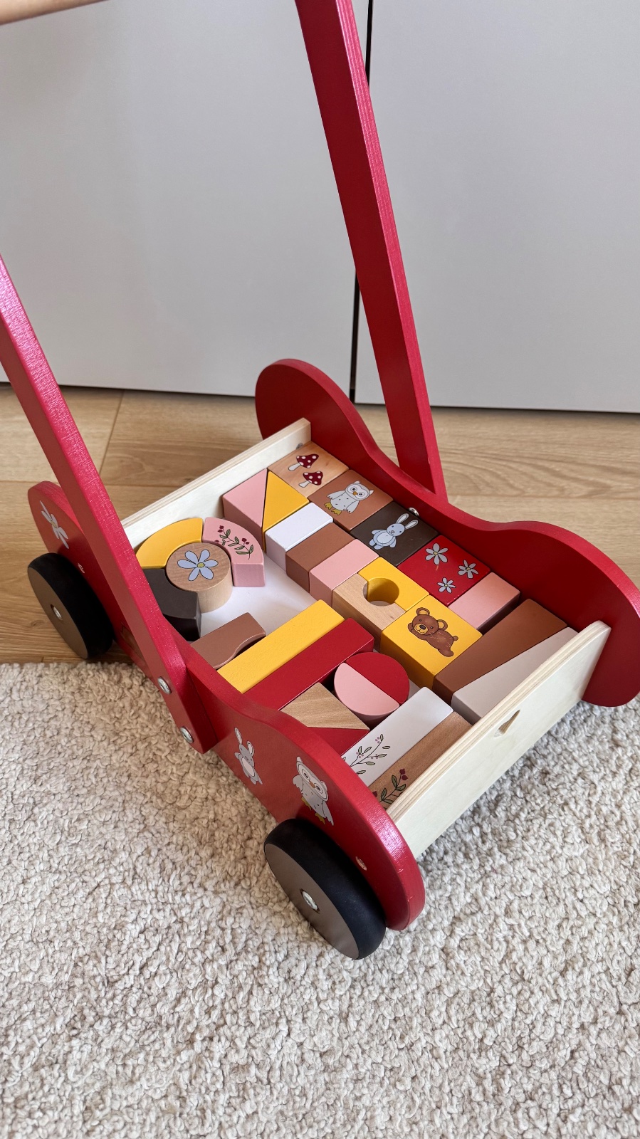 Dreveny vozik s kockami, tak ako je na fotke.Osobny odber