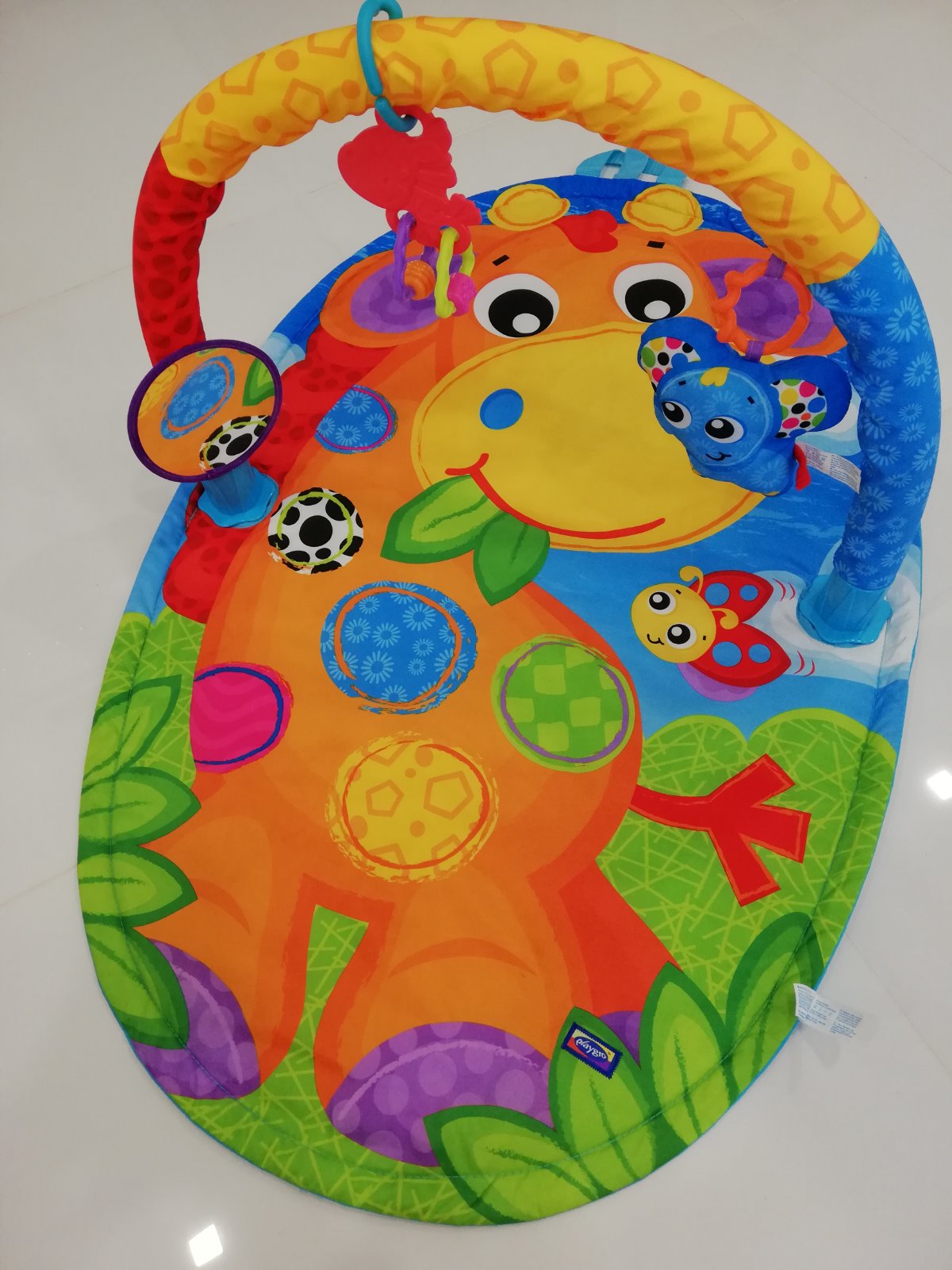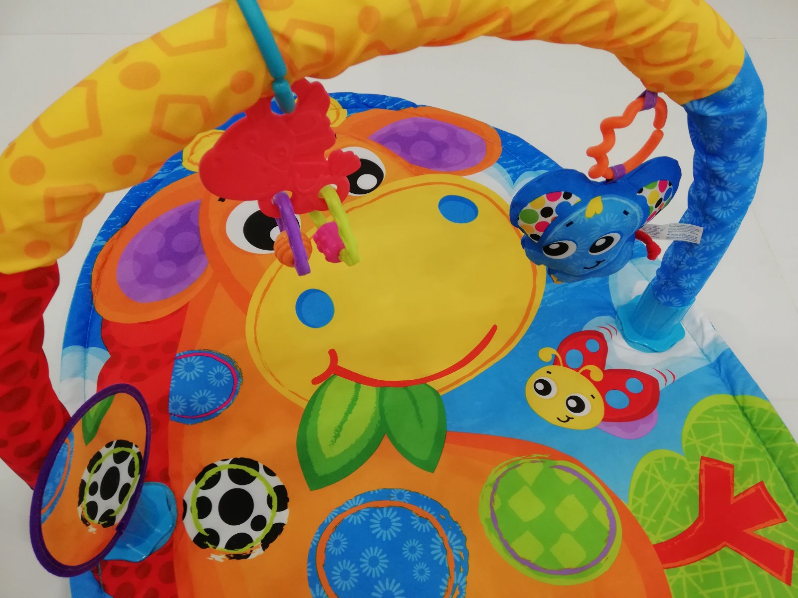 Predám veľmi málo používanú hraciu deku značky PLAYGRO krásnych živých farieb. Deka je v top stave, jedine zrkadielko je trosku poskrabane. Bola používaná len u babičky, keď sme občas pricestovali cez víkend. Hračky na hrazdicke sustia a sú vhodné aj na hryzkanie. Pôvodná cena 23,95€.