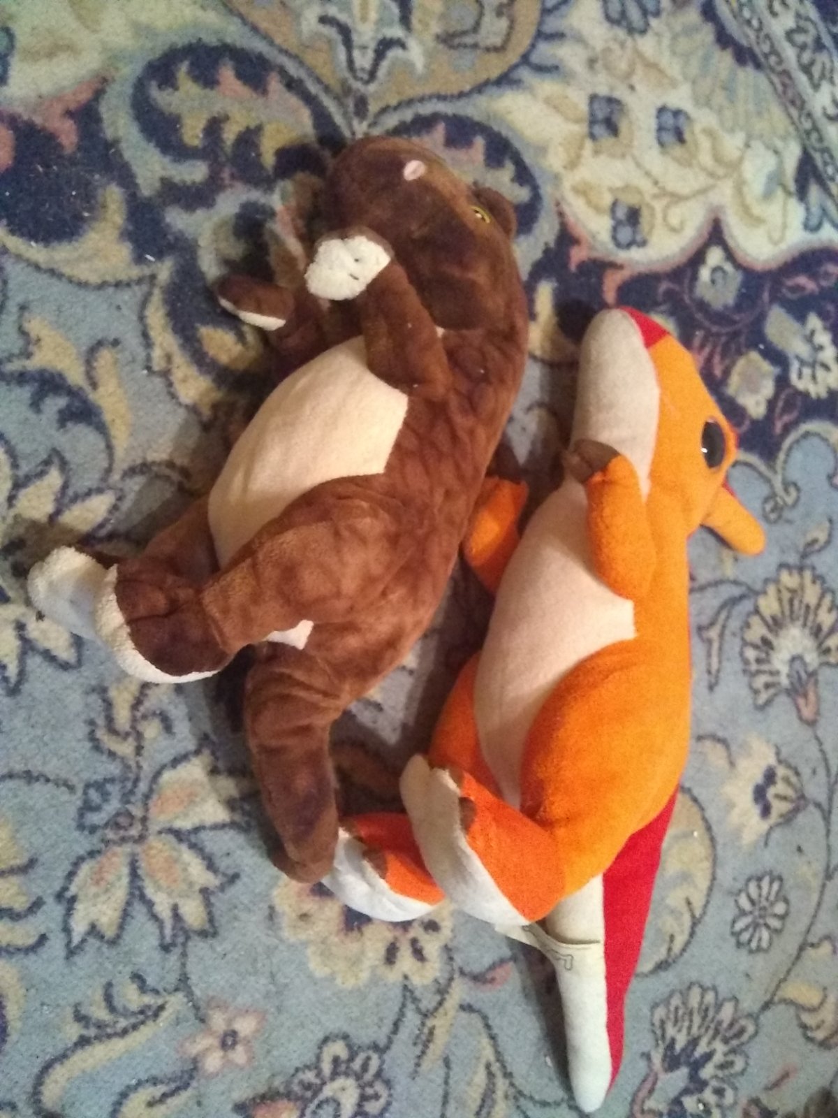 Pedam krasneho velkeho, gumeneho dinosaura o rozmere cca vyska 32cm a dlzka 45cm. Pre milovnikov dinosaurov je jedinecny, kupovany v zahranici :-)