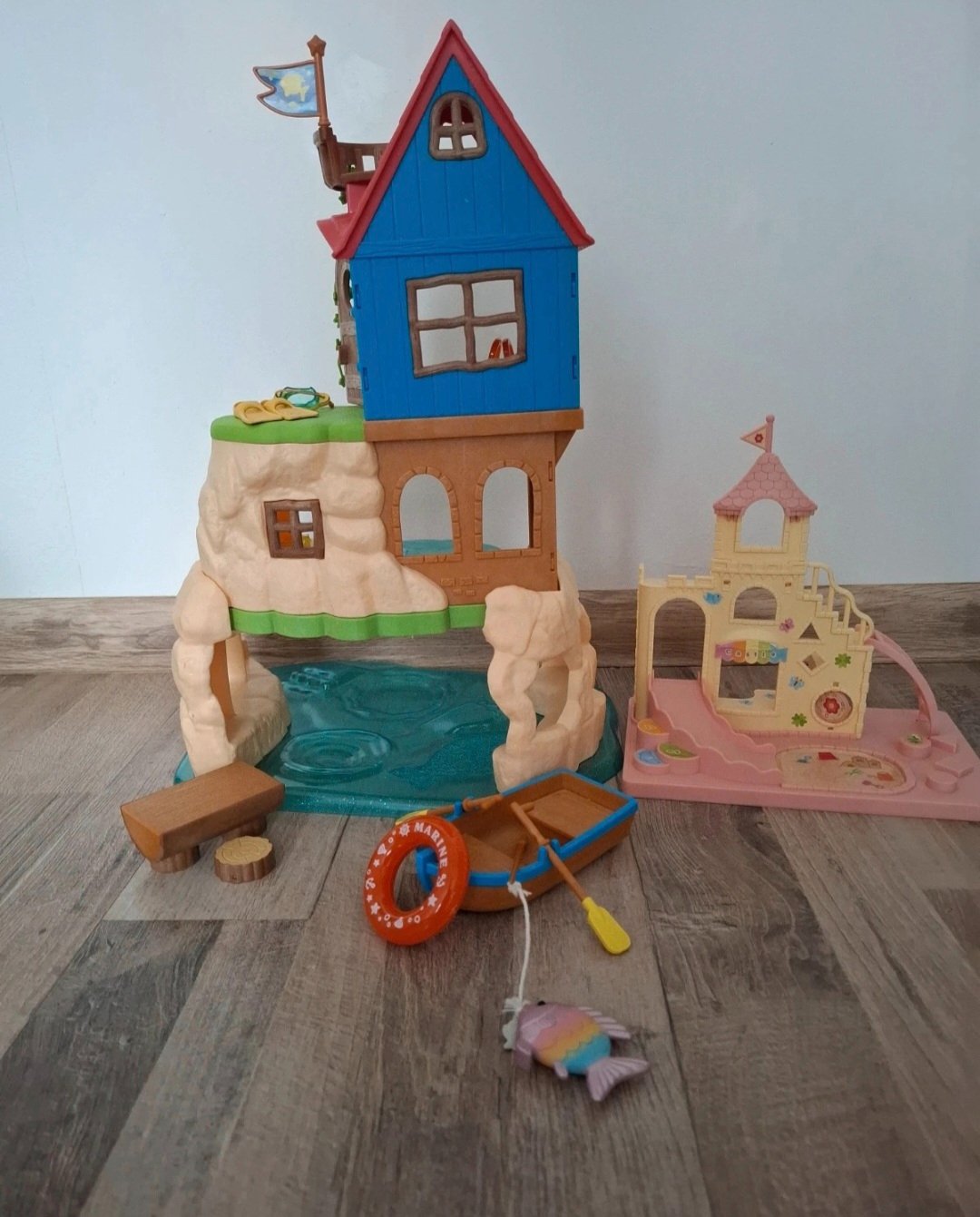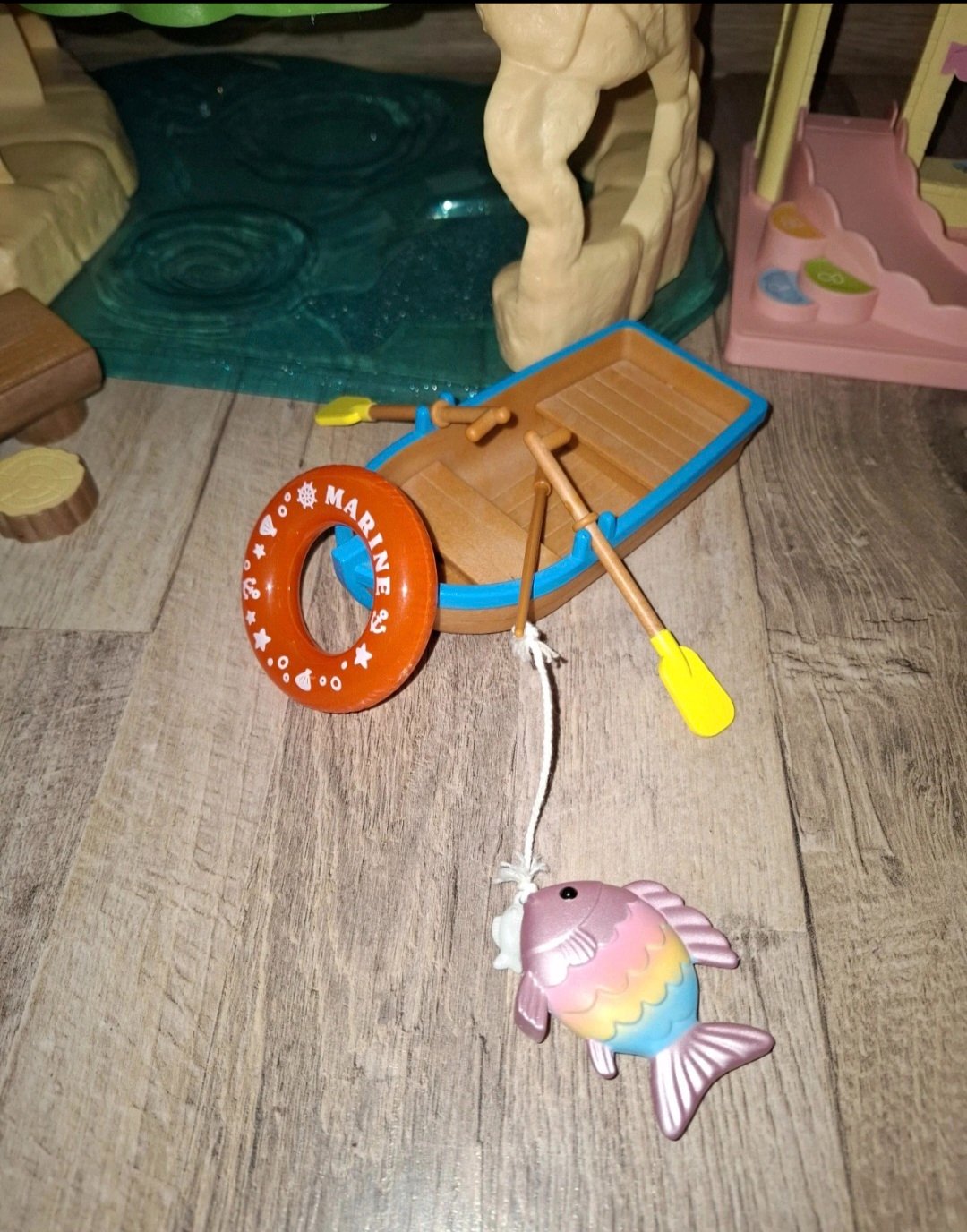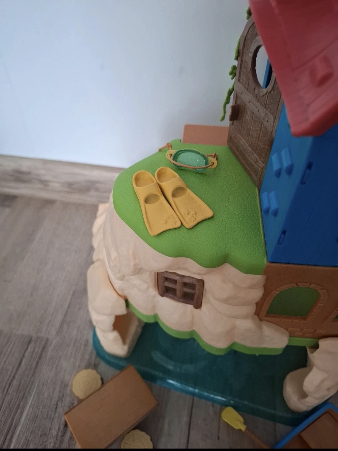 Súčasťou sú doplnky ako lodička, záchranné koleso, potápačské plutvy, okuliare a nábytok (stôl a stoličky).