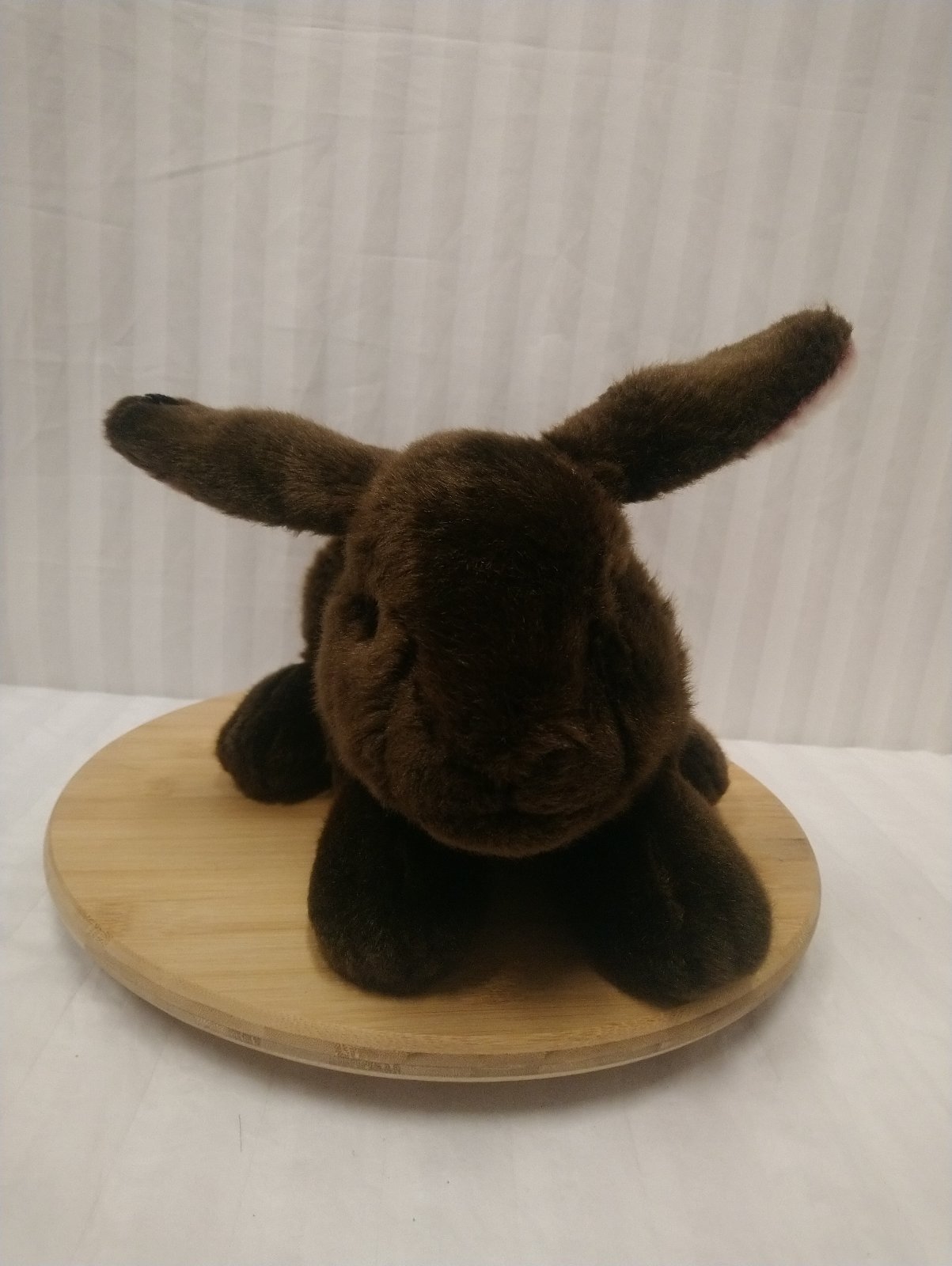 Plyšový hnedý Zajac Dutch Bunny, farba tmavo hnedá, ležiacim vyrobený z kvalitného jemného a mäkkého plyšového materiálu,