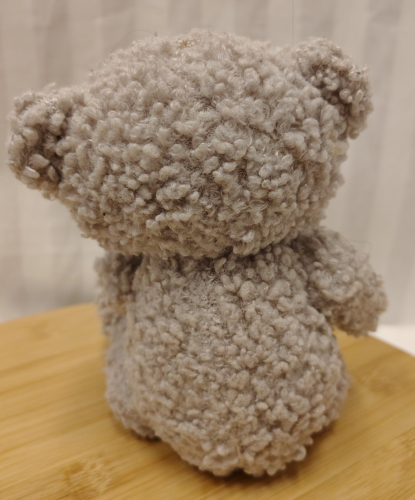 Plyšový sivý medveď s farebnou mašlou, 15 cm