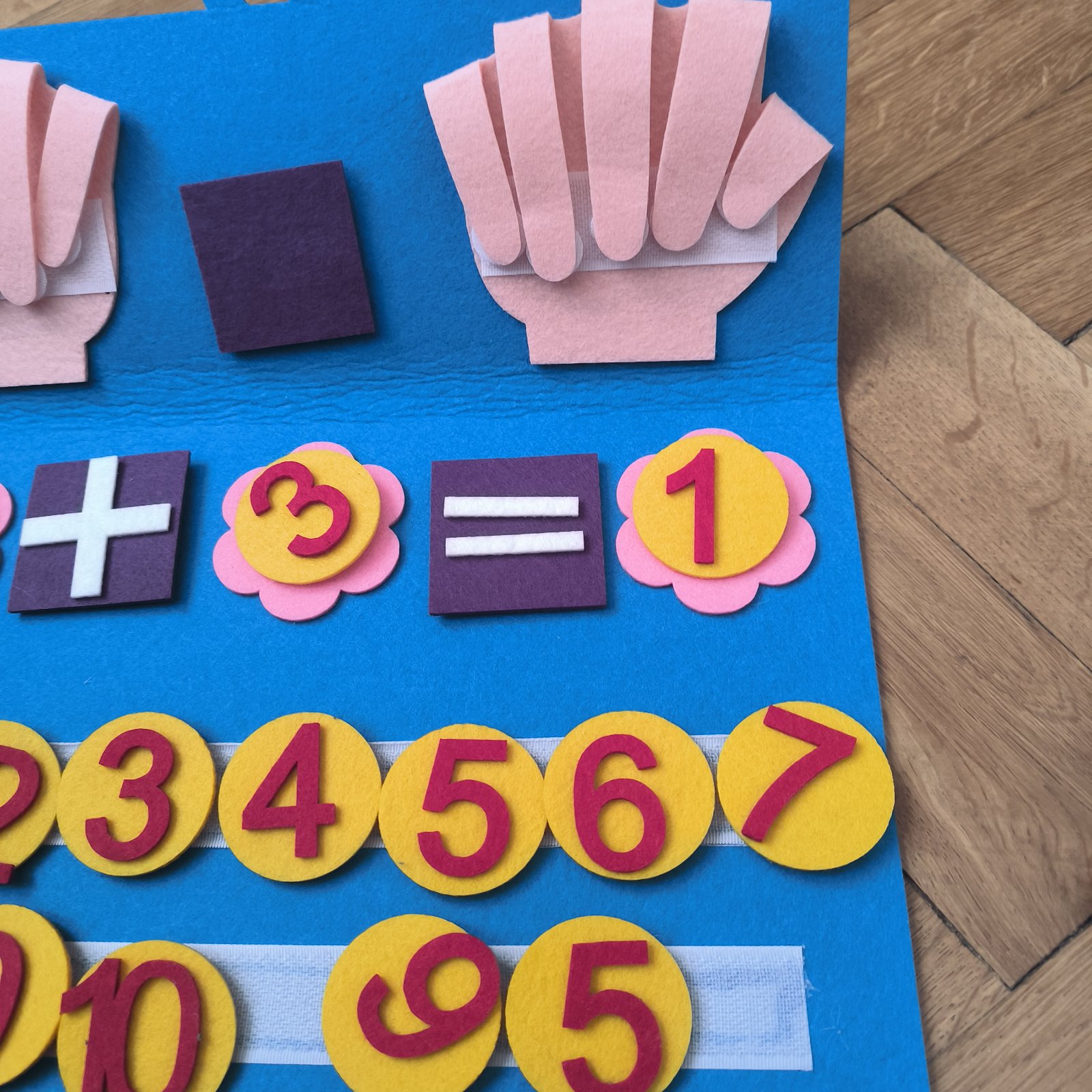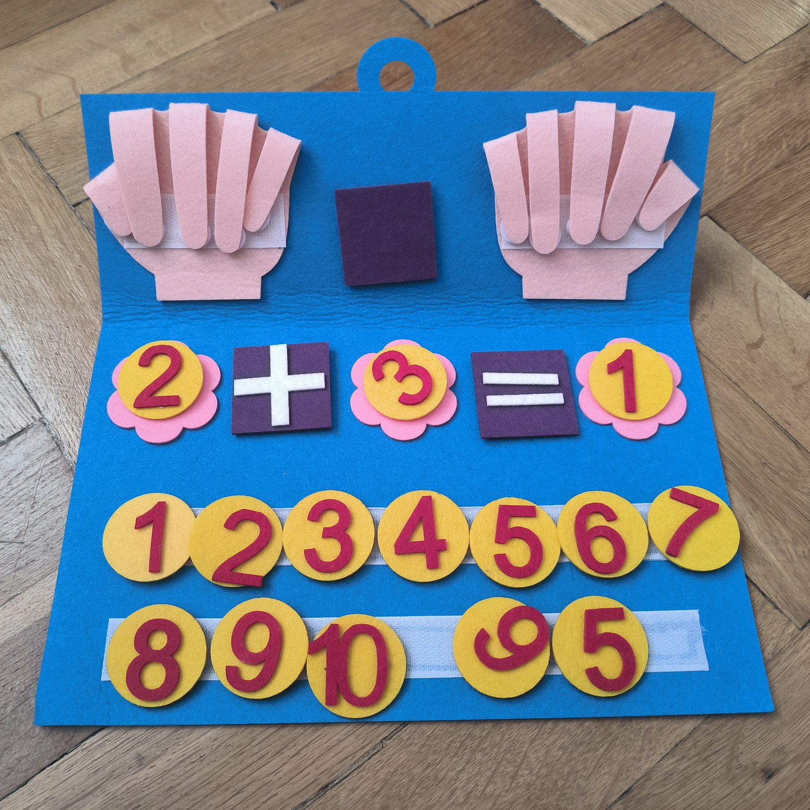 Predám detskú pomôcku na počítanie (prsty, čísla, plus, mínus), nepoškodenú.