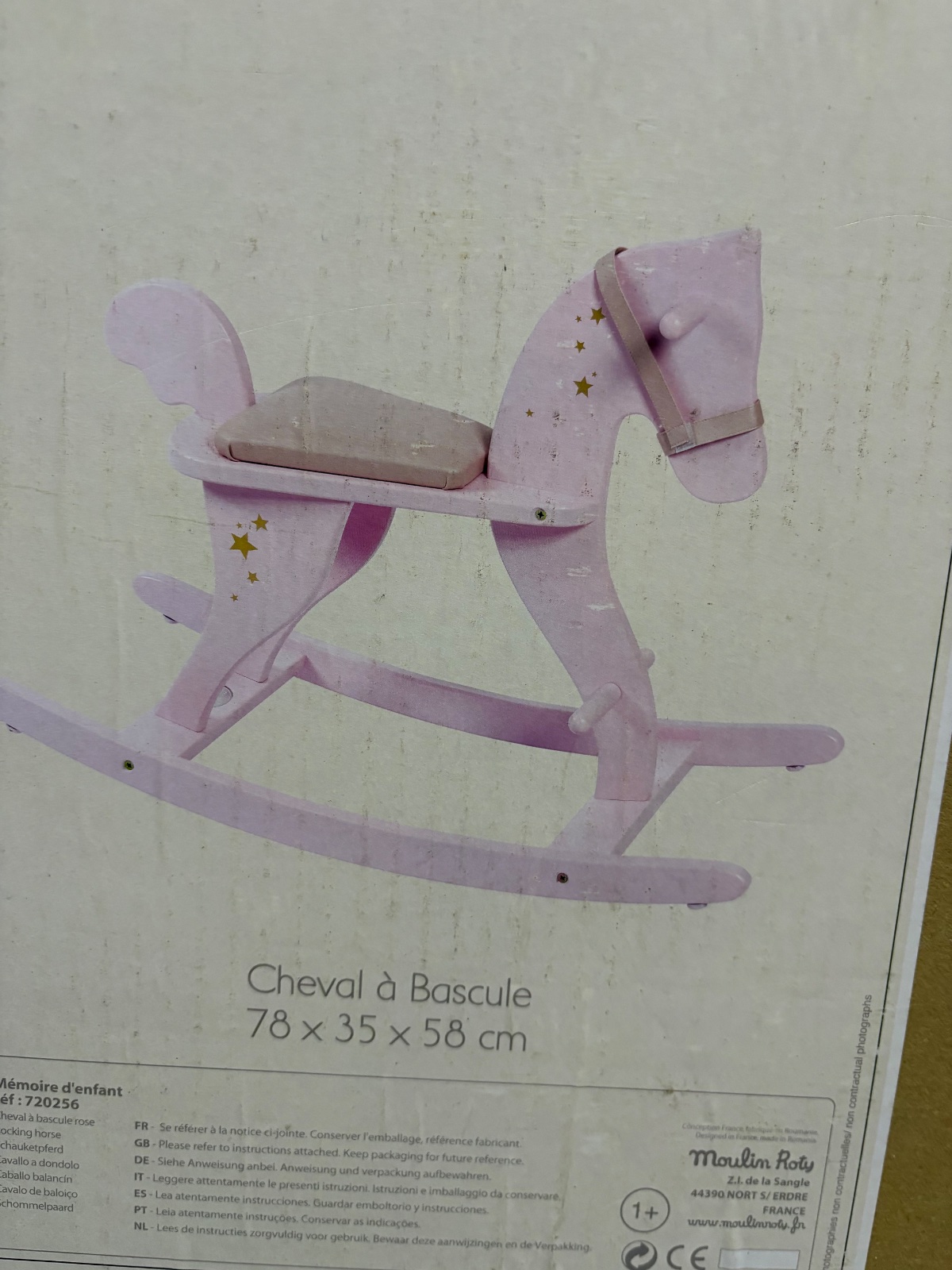 Moulin Roty nový hojdací koník,krasny ružový pre dievčatká,komplet s krabicou