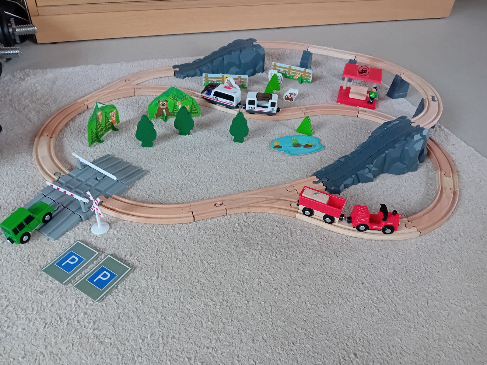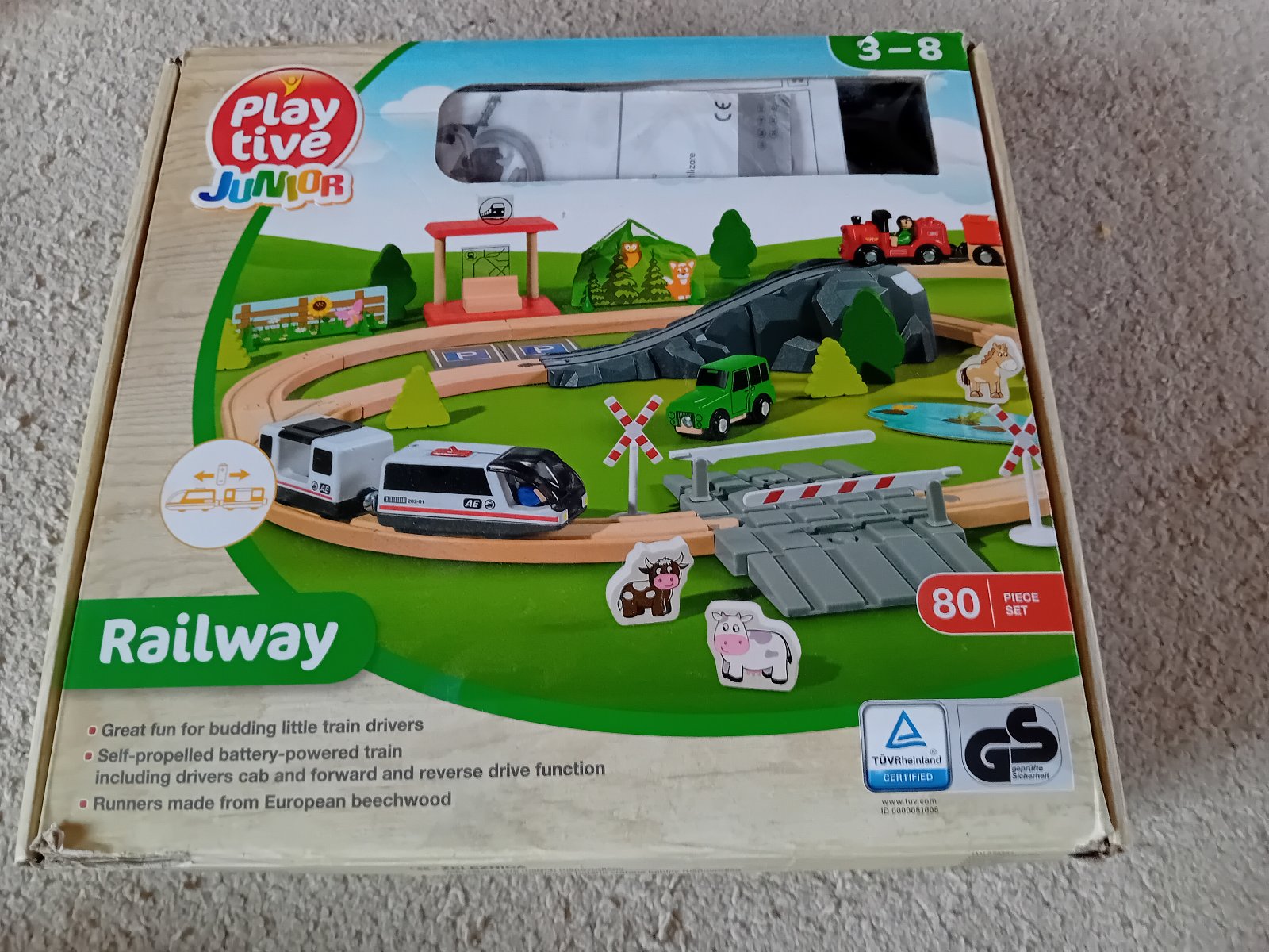 Ponúkam na predaj drevenú vláčkodráhu (vláčikodráhu) zn. Playtive. Je hraná ale v dobrom stave, bez poškodení, s originálnou krabicou a návodom. Chýba iba jedna plastová značka "železničné priecestie", obsahuje 80 dielikov na postavenie krajinky.