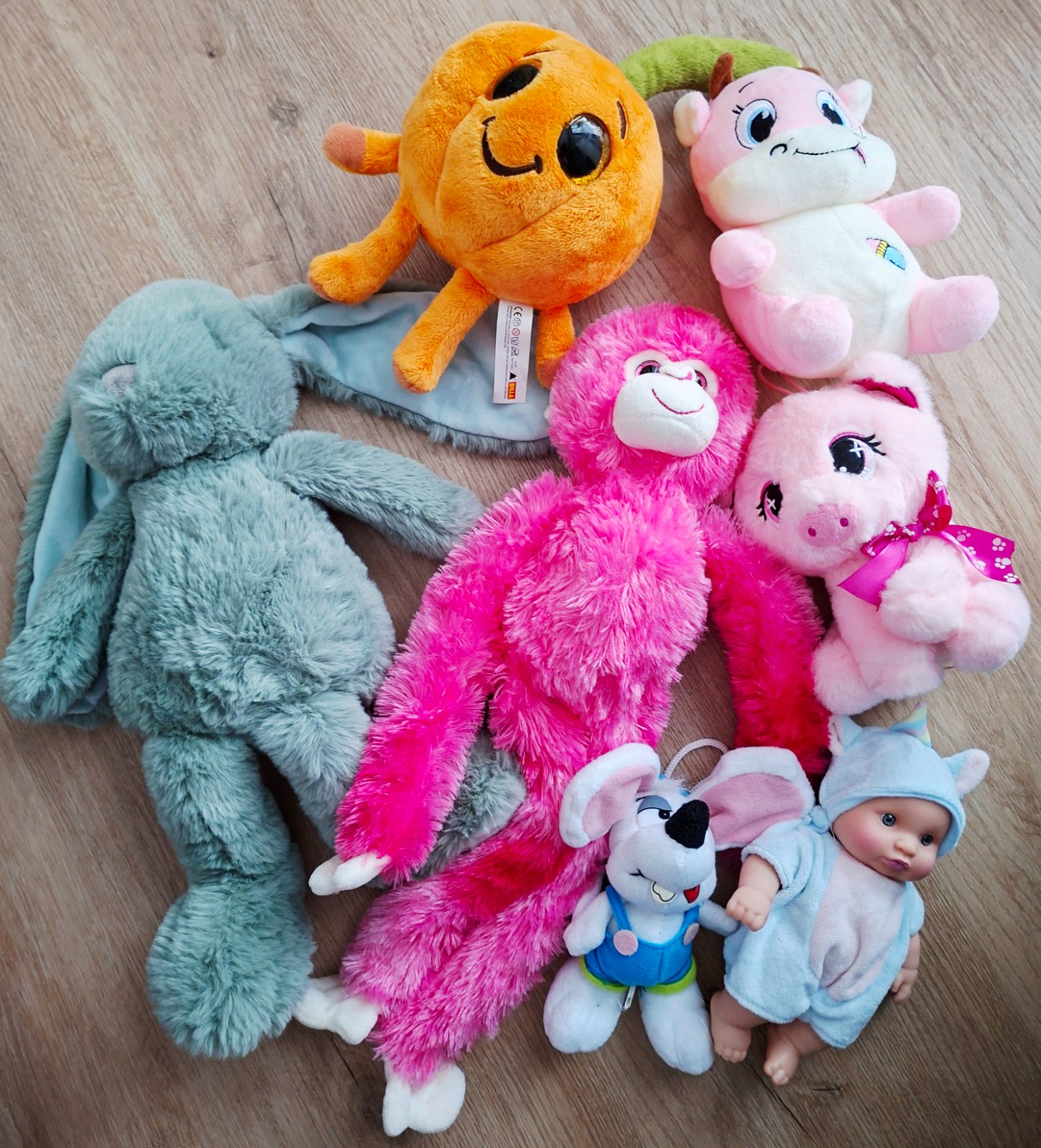 Veľká plyšová hračka, tým, že ma väčšiu hlavu tak nechce pekne sedieť, koniec chvostík zašitý, bola tam mala dierka
