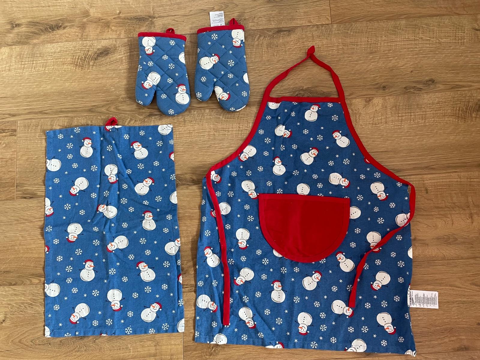Krásny detský setík- zástera, utierka, rukavice. Takmer nepoužité. Vhodné aj ako darček.