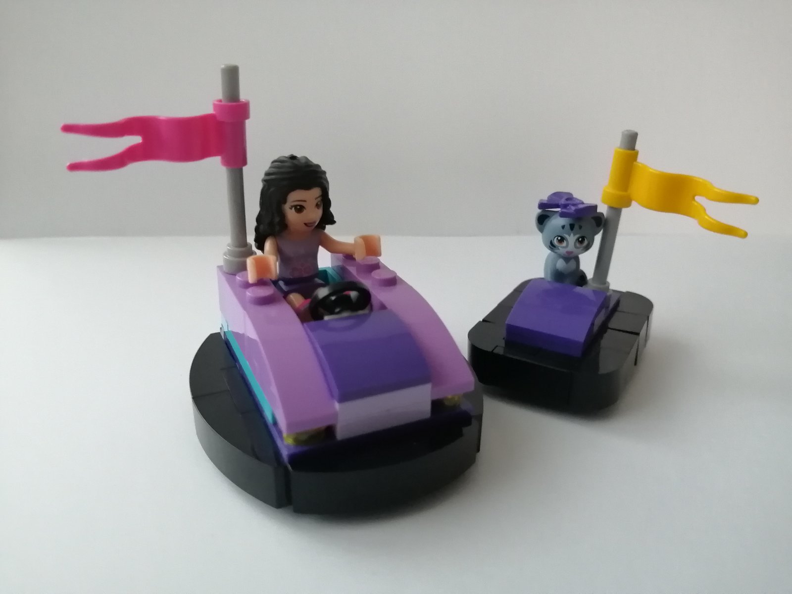 Použité lego 30409 Emma's Bumper Cars, Ema a jej autíčko, kolotočové autíčka ozdobené vlajkami, je tam aj roztomilé mačiatko Chicko