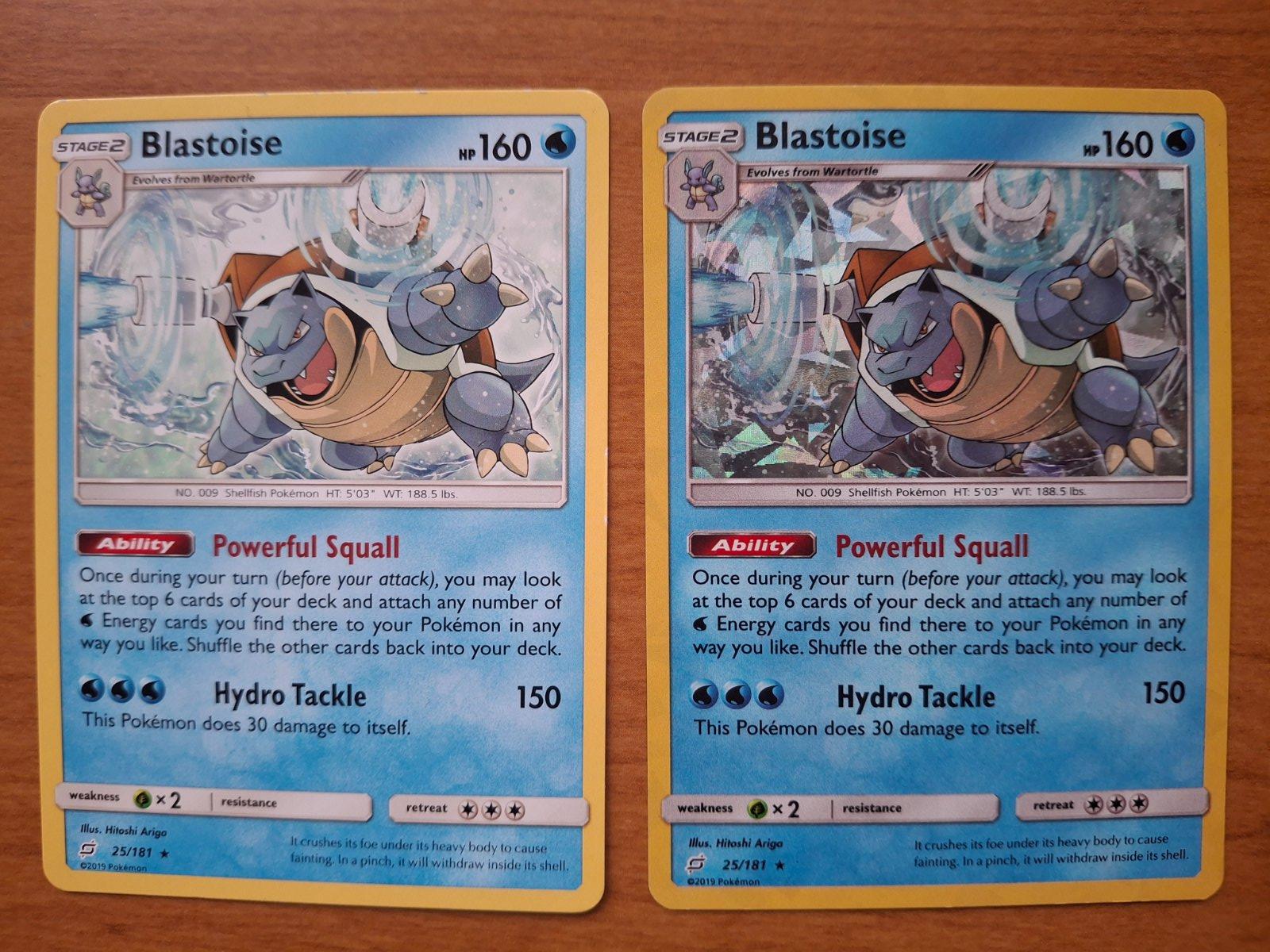 Séria 2 ks kariet Blastoise 25/181 2019, lesklá a matná, spolu za 39 eur, plus poštovné. Stav ako na foto,