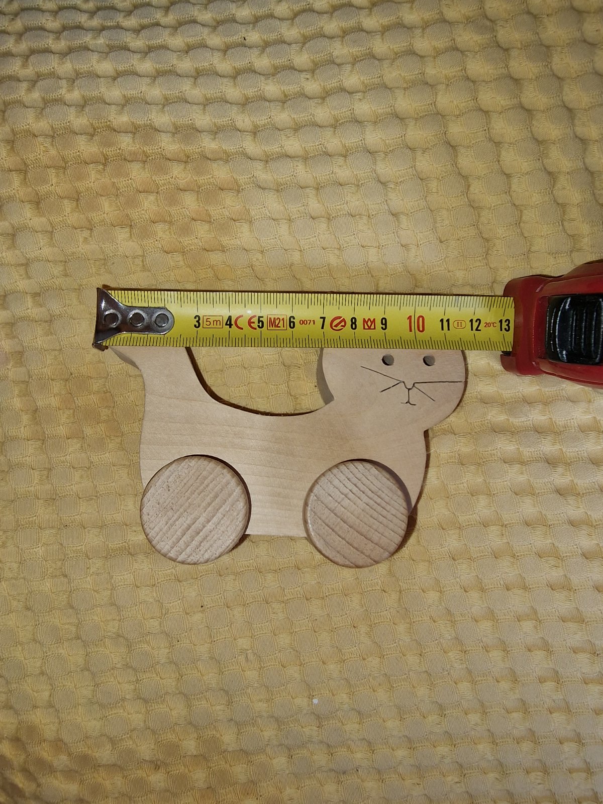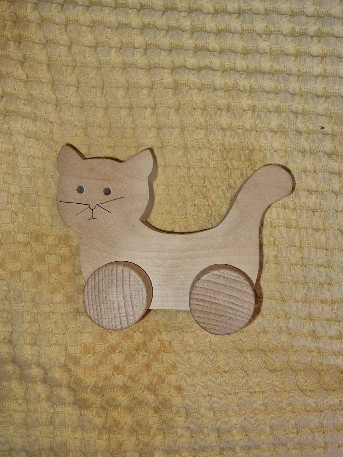 Drevená mačka na kolieskach