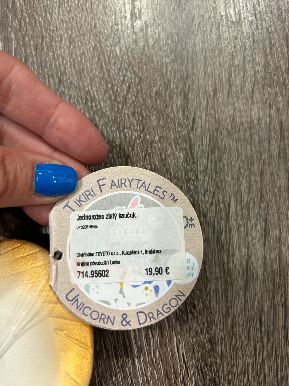 Postavičkaz kolekcie Tikirije vyrobená z prírodnej gumya ručne maľovaná farbami na rastlinnej báze. Môže byť používané aj ako hryzátkopre deti, ktorým sa práve prerezávajú zúbky. Jedinečná vôňa a chuť prírodnej gumy je u detí veľmi obľúbená a zaujme aj jemne znejúca hrkálka vo vnútri jednorožca.Šuštiaci chvost z mäkkej certifikovanej bavlny zabezpečuje stimuláciu viacerých zmyslov. Mäkkšie aj tvrdšie časti a výstupky masírujú detské ďasná a prinášajú úľavu a ukľudnenie. Bezpečné pre novorodencov aj batoľatá Prírodná guma šetrne získaná z kaučukového stromu Hevea s ohľadom na trvalú udržateľnosť Mäkká certifikovaná bavlna Jedinečná vôňa a chuť prírodnej gumy, tak veľmi obľúbená u detí Ideálne pri prerezávaní zúbkov Ručne maľované bezpečnými farbami na rastlinnej báze Bez BPA, PVC, ftalátov a iných nebezpečných látok Testované podľa EU noriem Všetky Tikiri produkty sú vyrobené s ohľadom na životné prostredie. Vieme, že rešpektovať životné prostredie znamená rešpektovať celú našu planétu, ktorú tak chránime pre ďalšie generácie. Výška cca 13cm. Vyrobené na Srí Lanke vo fair trade podmienkach.