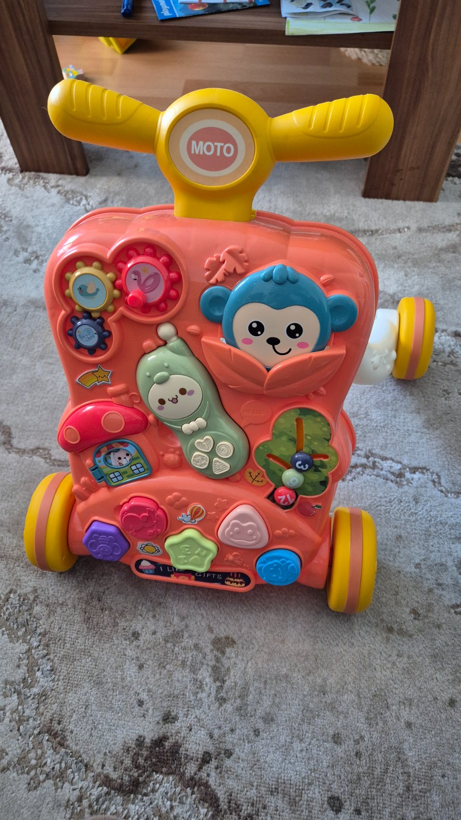 Predám zachovalé chodítko.Pri tlačení kravička otvára ústa.Su tam zábavne dieliky na stláčanie, točenie