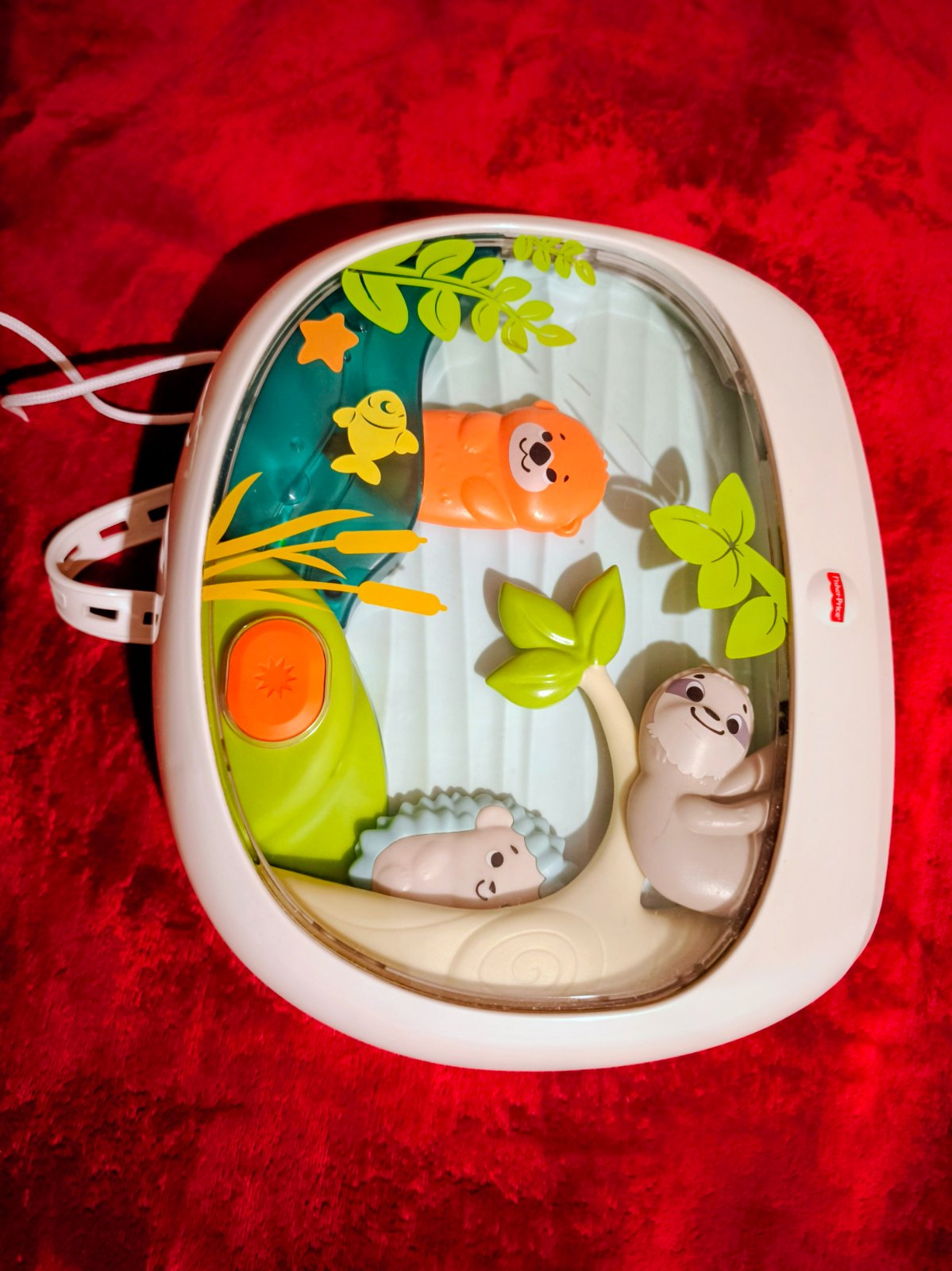 Uspávačik Fisher Price so zvieratkami, príjemná melódia, možno nastaviť hlasitosť, s časovačom prednastaveným na 25 minút. Hlasitosť sa postupne znižuje pri zaspávaní. Na výber medzi melódiou, zvukmi prírody, biely šum. Zvieratká sa jemne na displayi pohybujú, možno ich vypnúť. Display možno rozsvietiť. Tiež má projekciu hviezdičiek na strop. Možno upevniť o rám postieľky alebo postaviť na stojan. Na displayi má tlačidlo na zapnutie/vypnutie, ktoré si vie dieťa stlačiť, keď je staršie. Má jeden povrchový škrabanec, na fotke vidno. Inak plne funkčný. U nás veľká spokojnosť, kúpila by som ho znova.