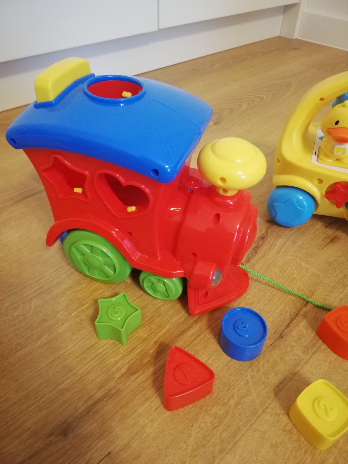 Predám hračky po 1 dieťati vo veľmi dobrom stave. Vláčik vydáva rôzne zvuky, doplňujú sa doň rôzne tvary a vyhadzuje ich zozadu. 4€
