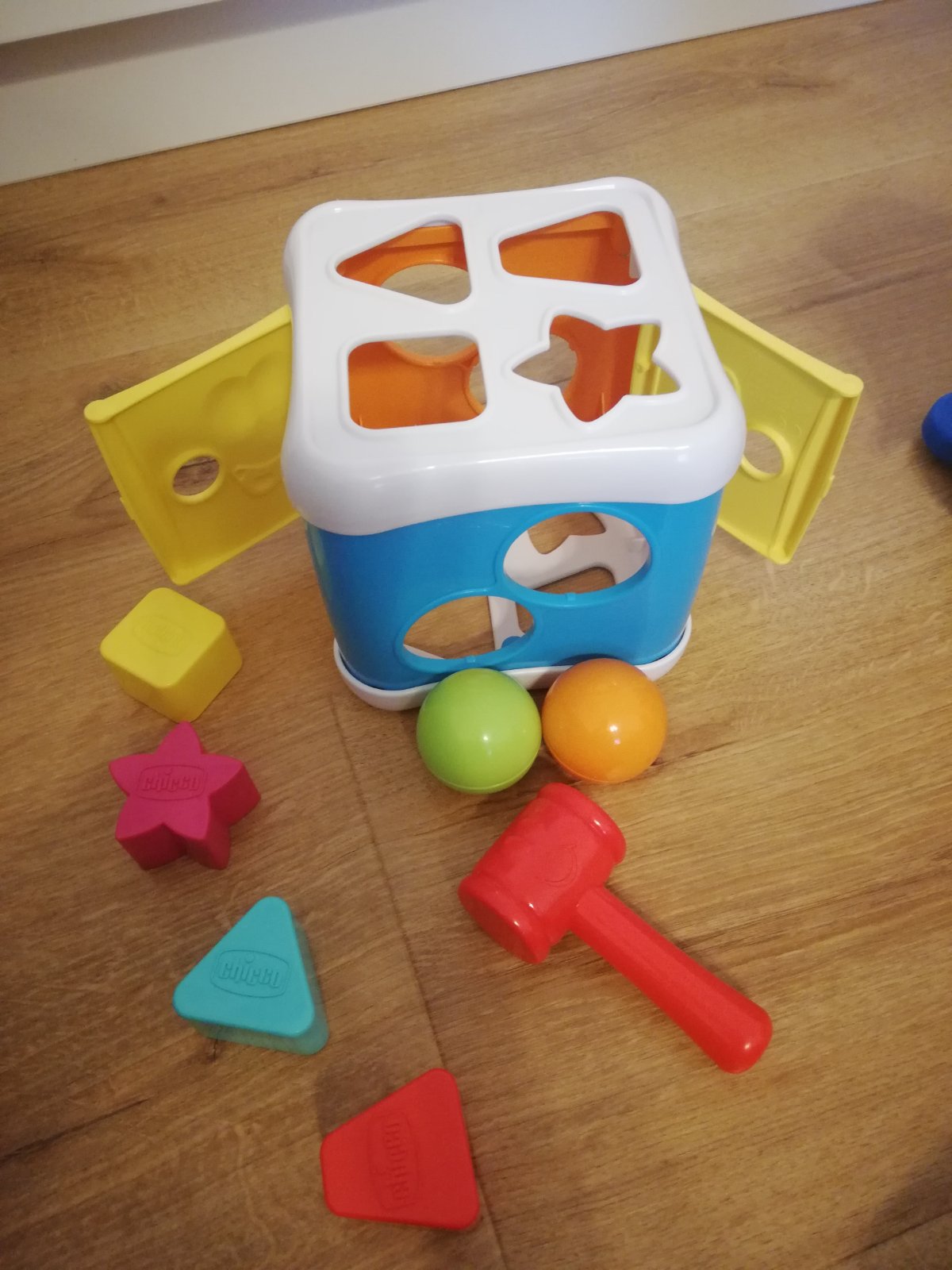 Kocka: vkladanie rôznych tvarov a farieb, keď ju otočíte mate zatlkaciu kaldivkovu hracku, takže 2v 1 :) 4€
