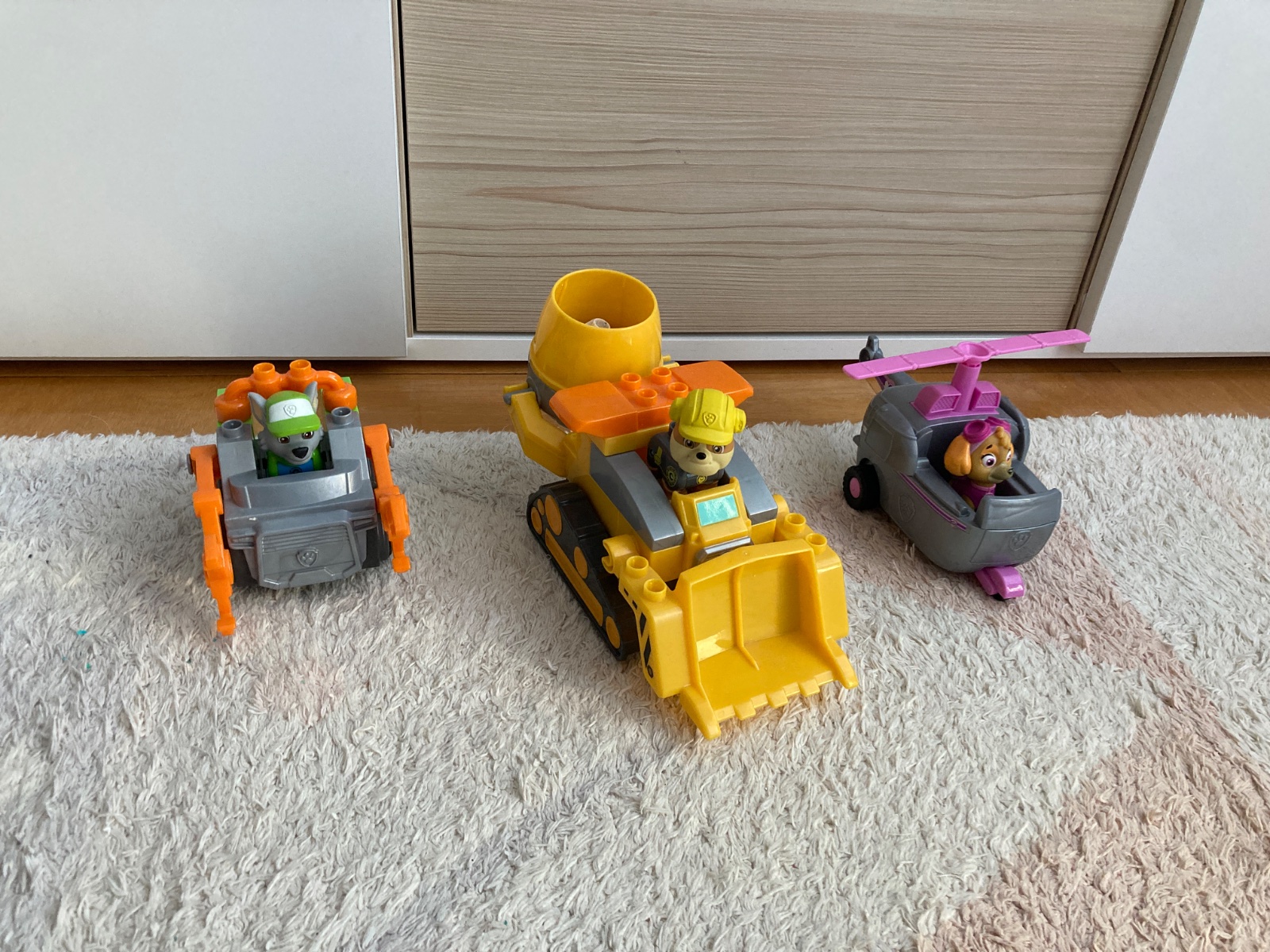 Ponukam na predaj Mega bloks stavebnicu Labkova patrola. Originál krabice už bohužiaľ nemám. Kúpené boli ako dve extra stavebnice. Jedna Rubble a druha Rocky. Autíčka sa dajú rozobrať na jednotlivé diely. Stav ako nové, dcérka sa s nimi takmer nehrala. Mame aj Skye vo vrtuľníku, tak však nieje od mega bloks. Rada ju prihodim kupujúcemu, ktorý bude mať záujem. Predaj jednotlivo alebo aj spolu. Cena Rubble 14€, Rocky 11€.