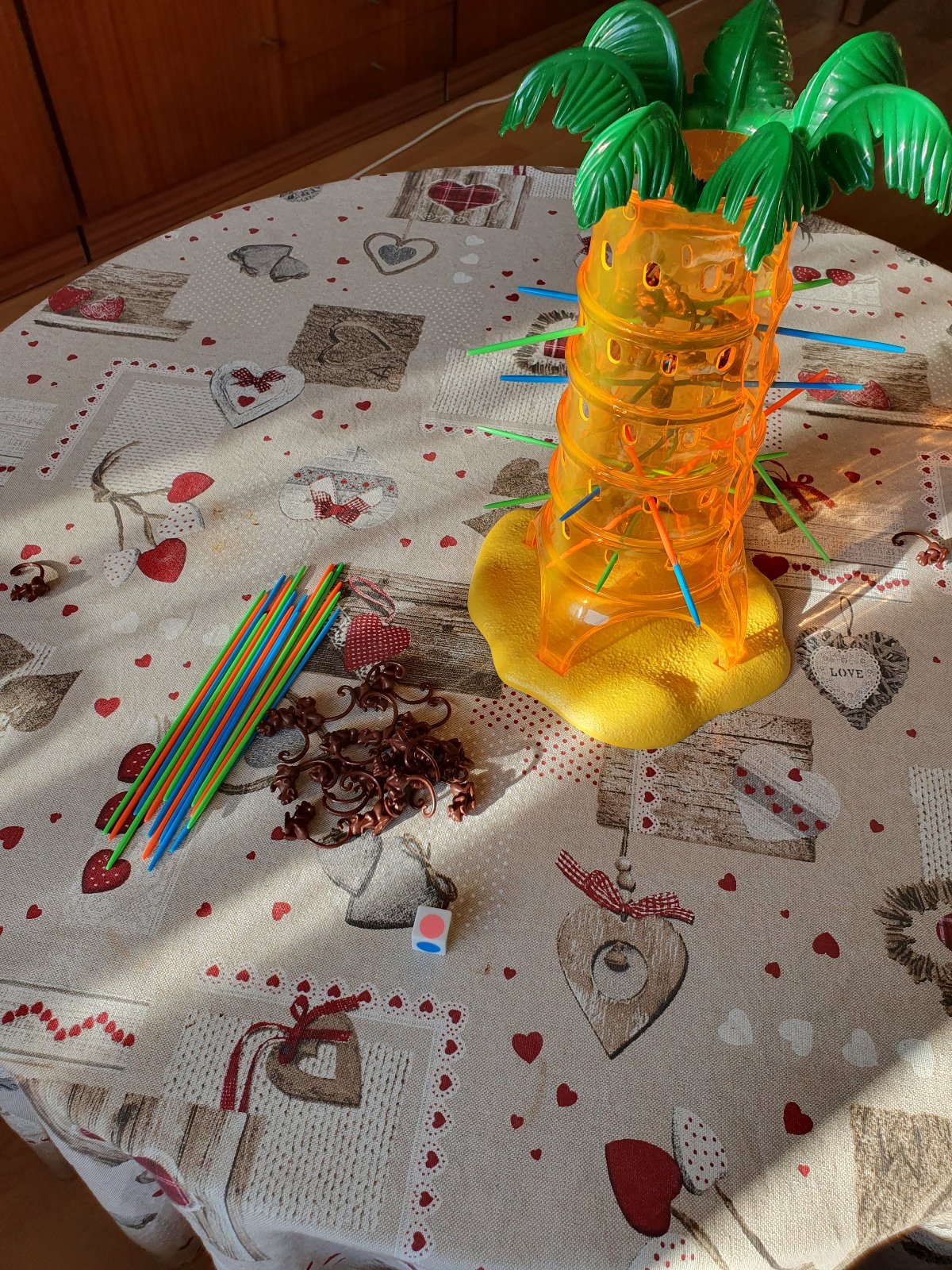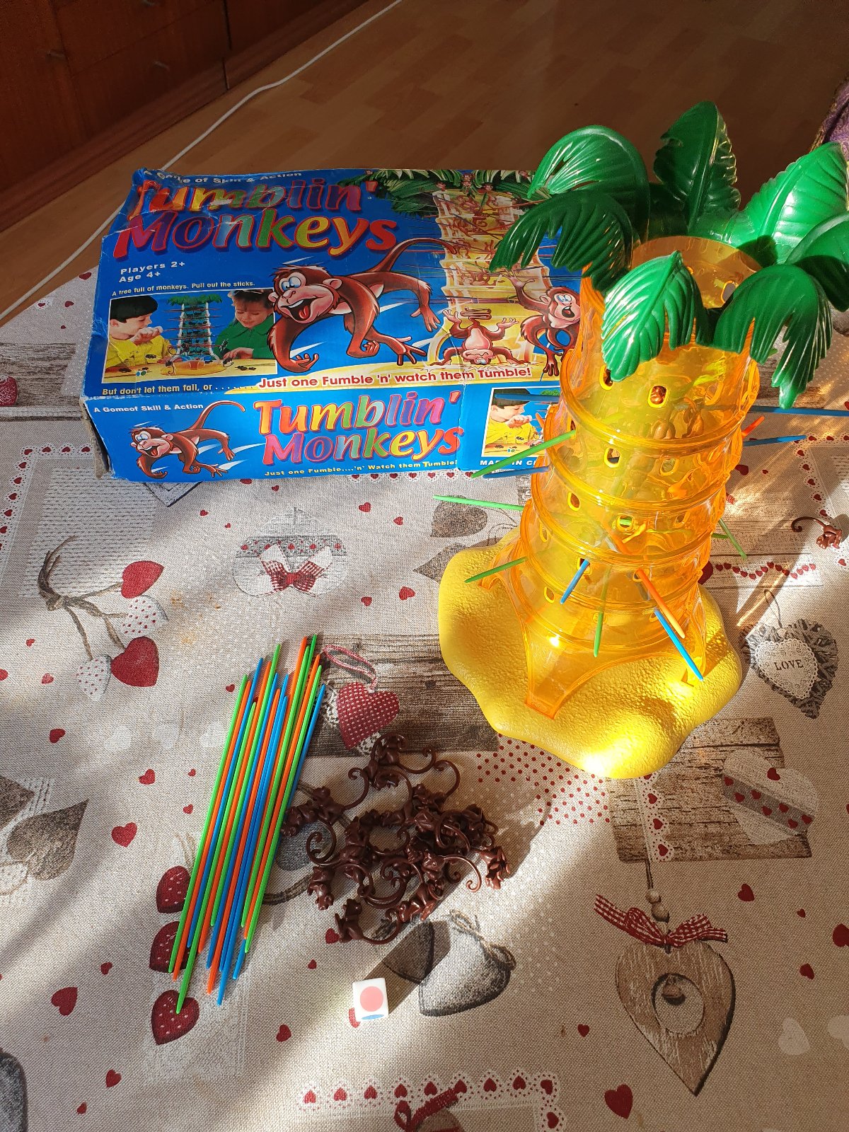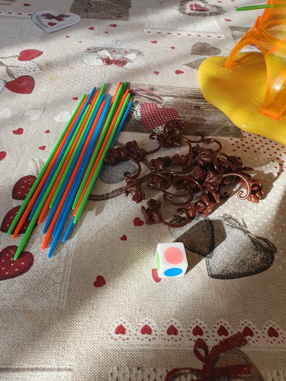 Hráči umiestnia opičky na strom a pohybujú tyčkami podľa pohybov hracej kocky. Hráč, ktorý pozbiera najmenší počet opičiek, vyhráva.