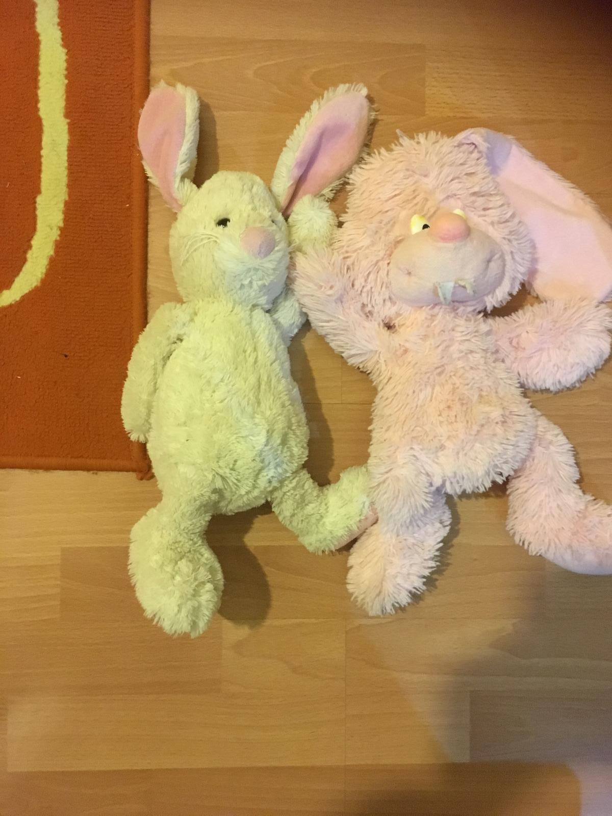 Predám milé zajačiky Ok stav sú vetsi ružový 47 cm ,,má trosku oškretý noštek 4 e ostatne 5 e kus pošta 1 e obycajne žltý spal